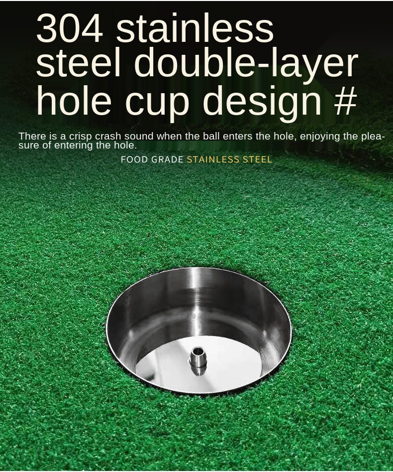 Lỗ golf được làm bằng chất liệu thép không gỉ cao cấp, thời gian sử dụng lâu dài, khả năng chịu lực tốt, giúp cho khách hàng hoàn toàn yên tâm sử dụng.
