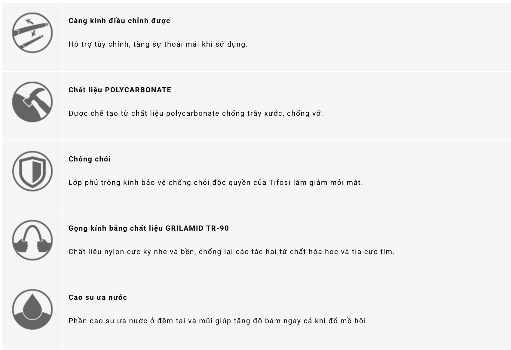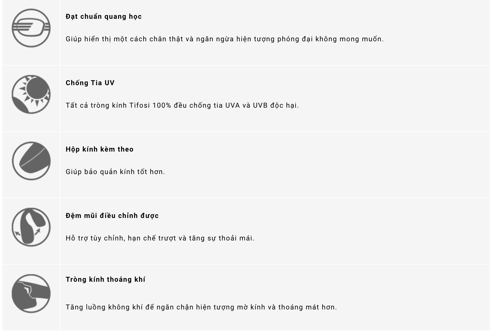 - Chống Tia UV: Tất cả tròng kính Tifosi 100% đều chống tia U