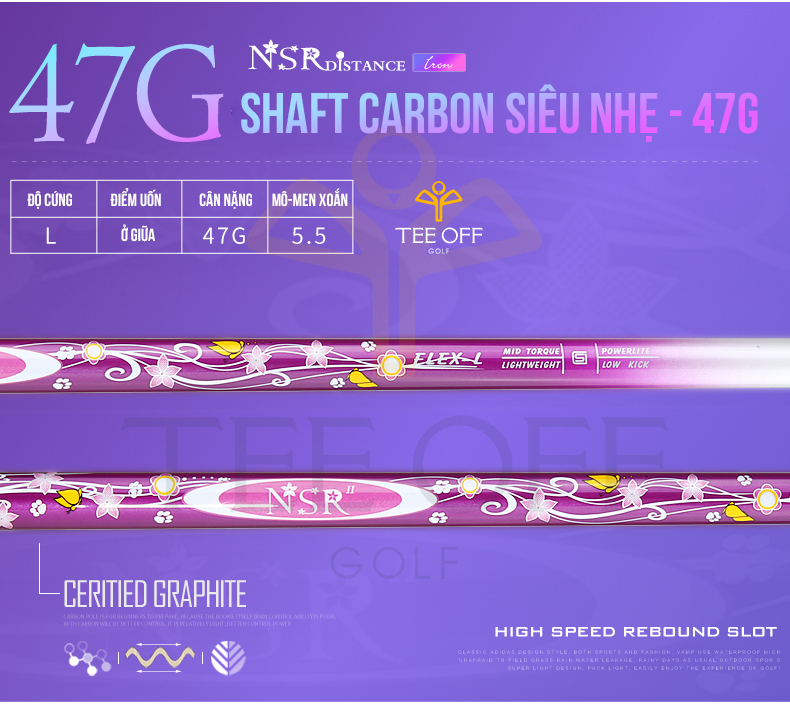 - Công nghệ chế tạo và sơn phủ cao cấp trên cán gậy Graphite.
