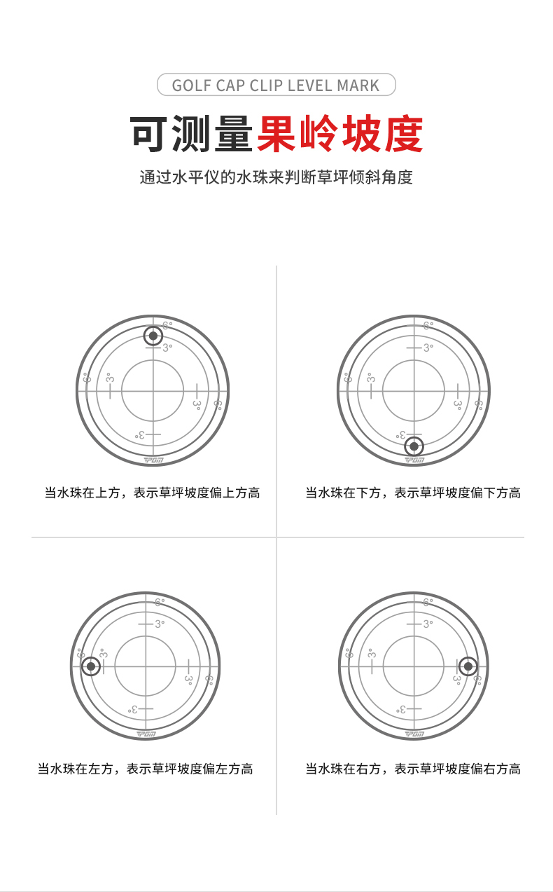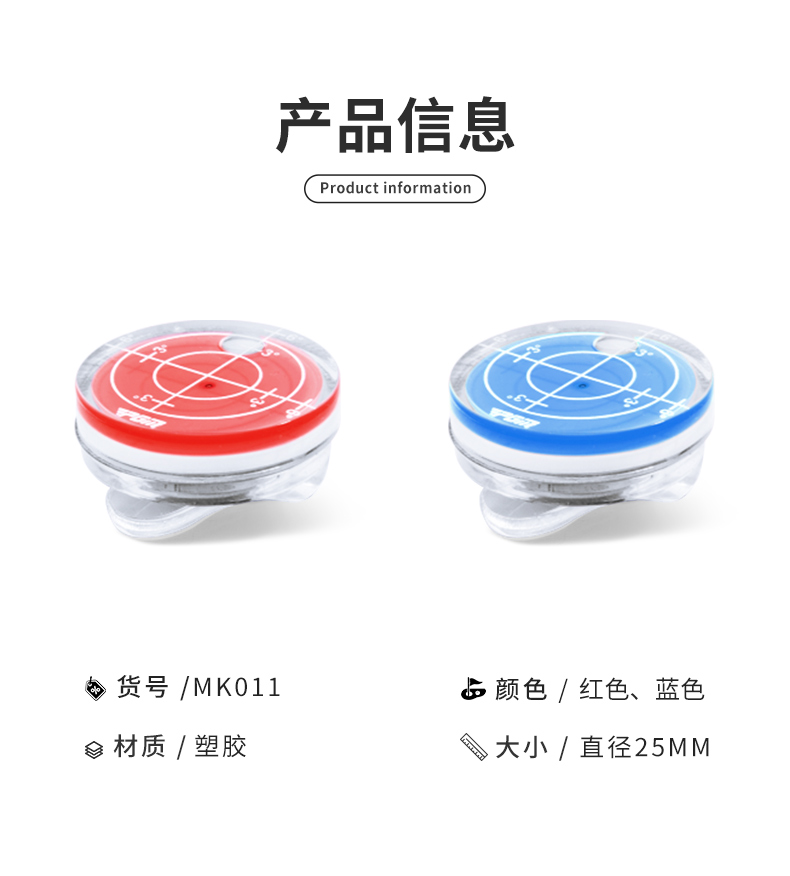Sản phẩm mark bóng MK011 có tích hợp tính năng đo độ dốc của sân nhờ vào giọt nước trong mark.
