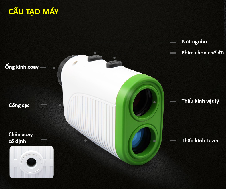 - Điều chỉnh thị kính bằng nút , Xoay trái và phải để điều chỉnh độ trong. Khoảng cách đo tối đa lên tới 400m và 600m.