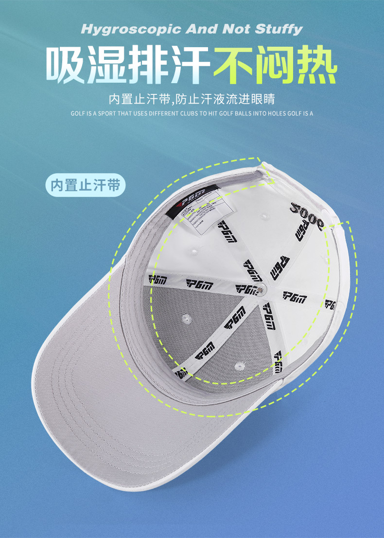 - Golf là một môn thể thao ngoài trời, vì vậy người chơi nên chuẩn bị cho bản thân một chiếc mũ để bảo vệ làn da trước ánh nắng mặt trời, chống tia cực tím. Mũ Golf PGM nhỏ gọn tiện lợi không gây ảnh hưởng cho cuộc thi đấu mà còn tăng điểm cho phong cách thời trang của bạn Golfer.
