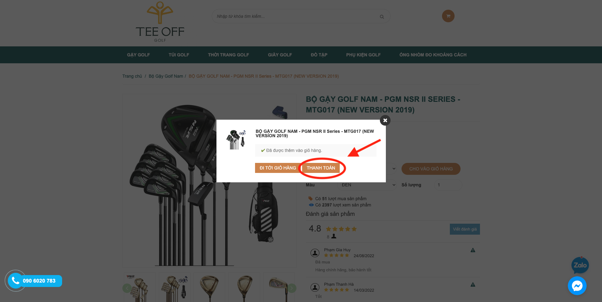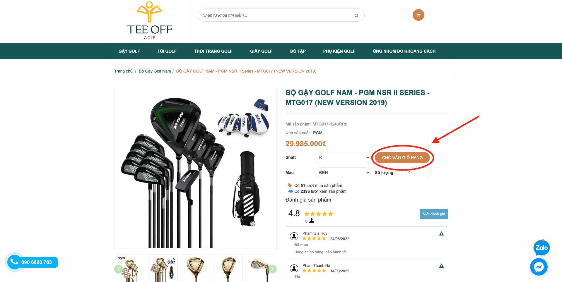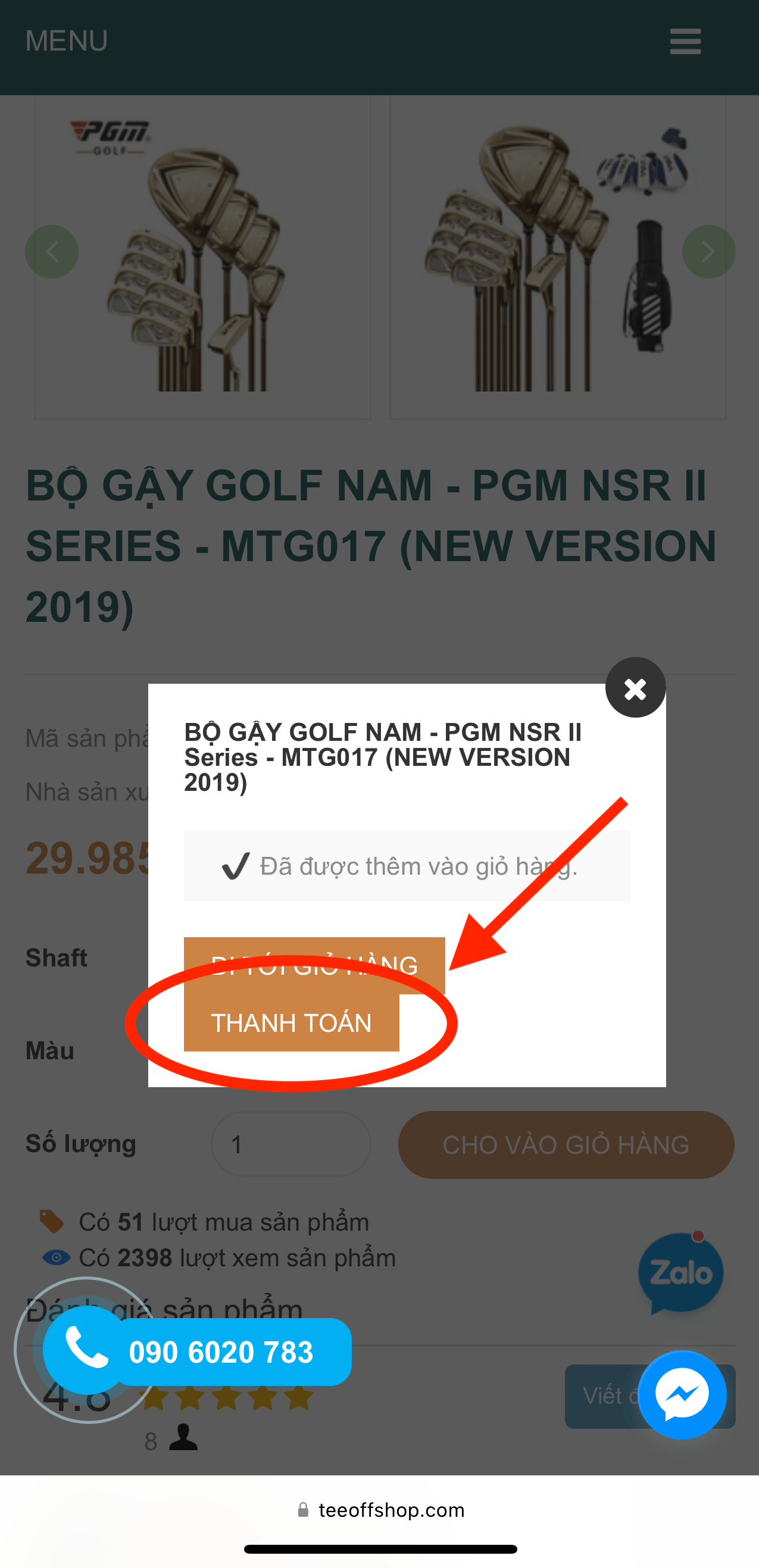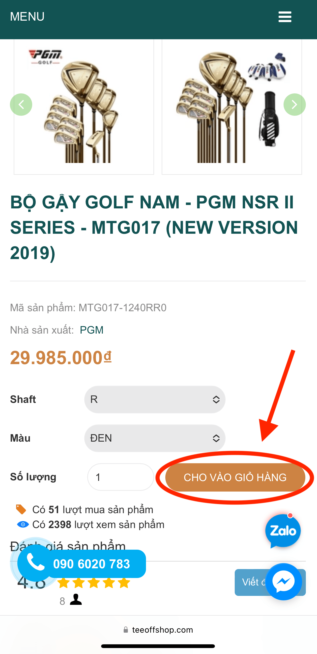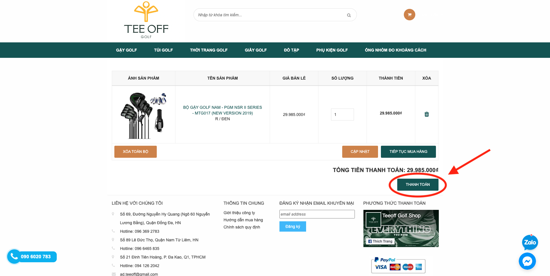 Bước 1: Truy cập website TeeOff Golf mua sắm và thêm các sản phẩm vào giỏ hàng