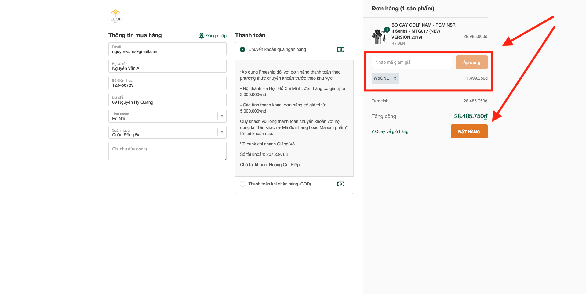 Cách dùng voucher TeeOff Golf mua hàng online giảm giá