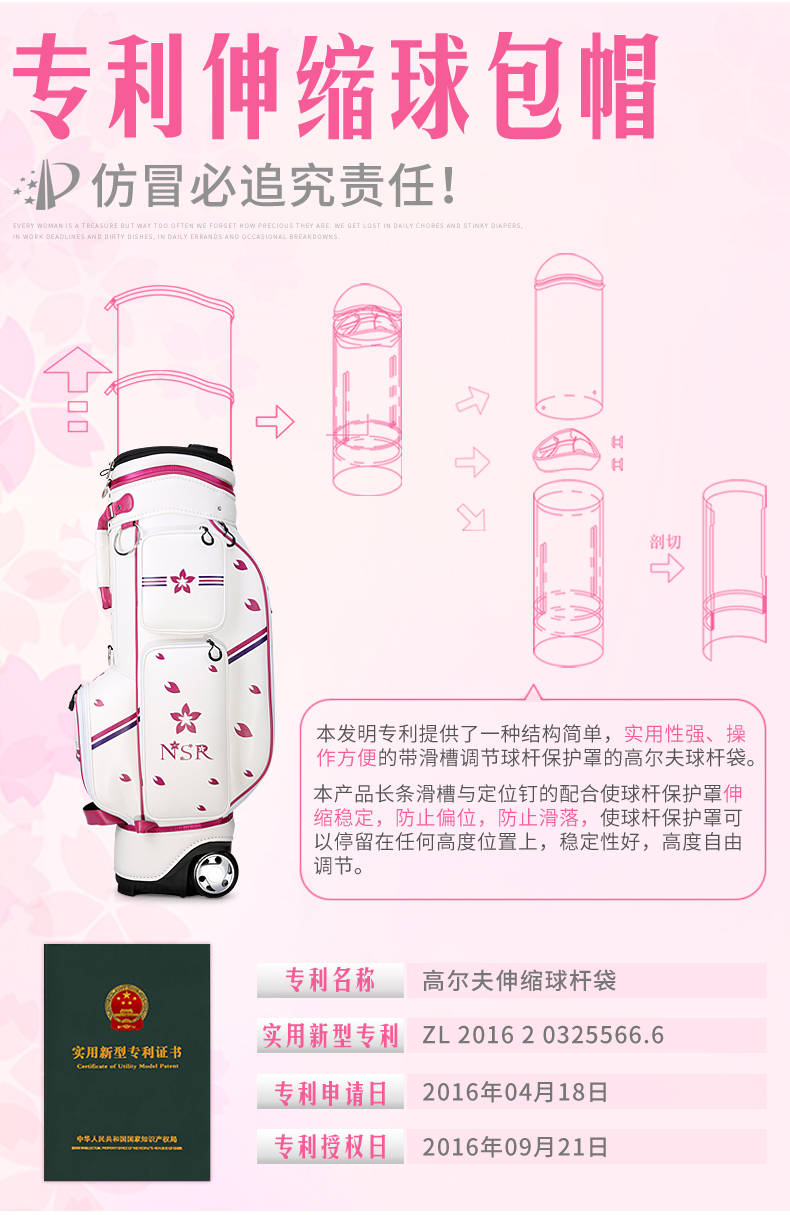 - Tên sản phẩm: Túi Gậy Golf Nữ - PGM Microfiber Flower Printing Golf Bag - QB056