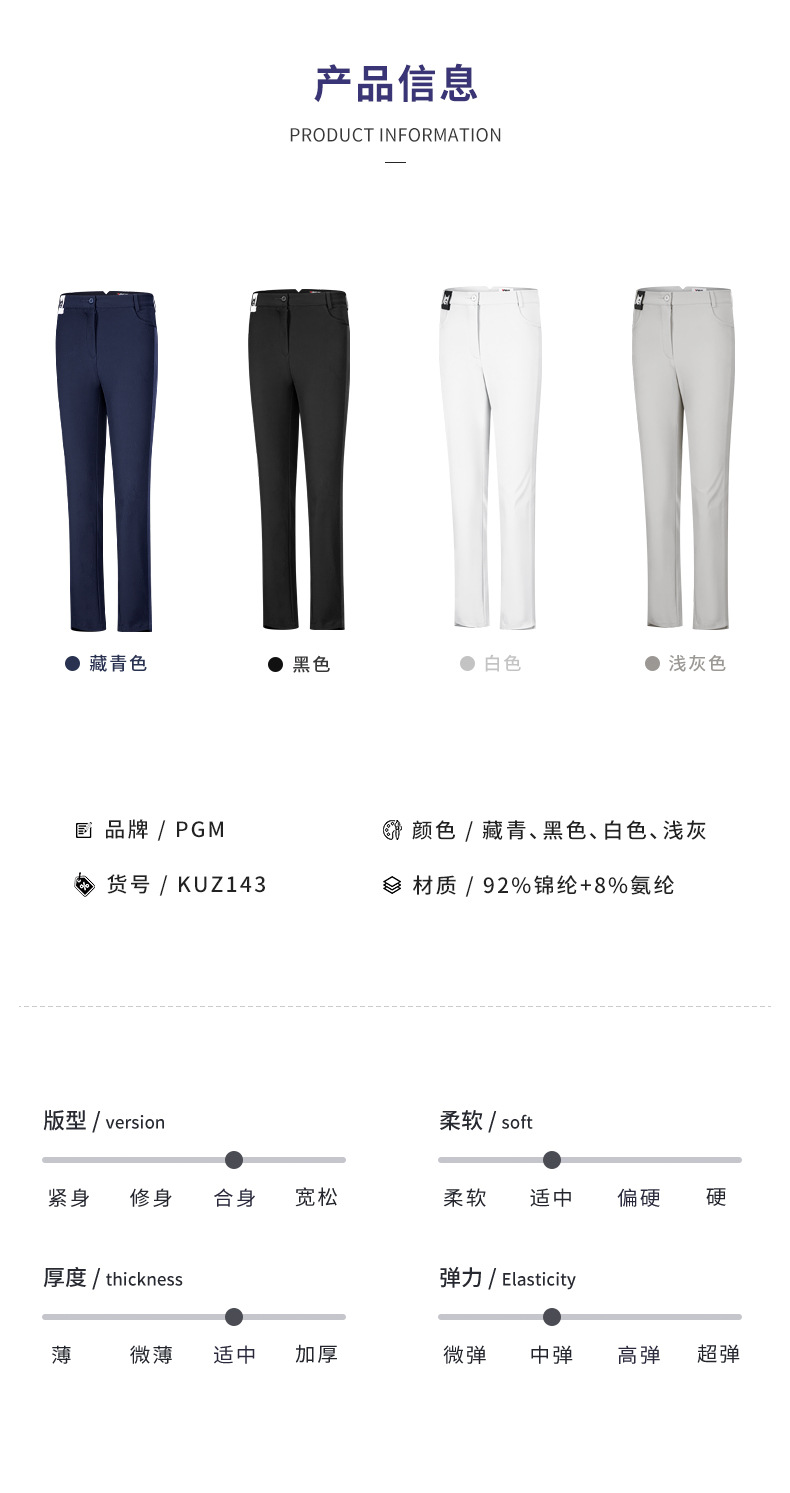 - Quần KUZ143 là một mẫu quần mới nằm trong bộ sưu tập thời trang thu đông của hãng PGM. Với thiết kế thời thượng và chất liệu co giãn, nhiều túi tiện dụng, sản phẩm này đang chiếm được nhiều cảm tình của golfer nữ.