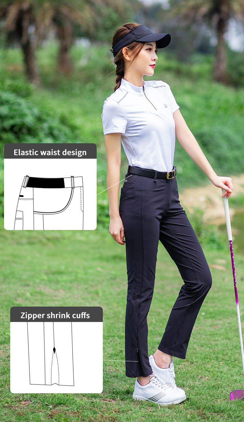 - Chất vải mềm mại, co dãn tốt, giúp nữ Golfer thoải mái vận động.