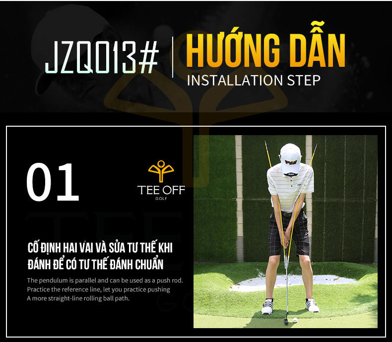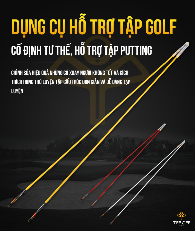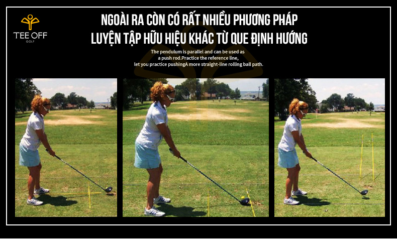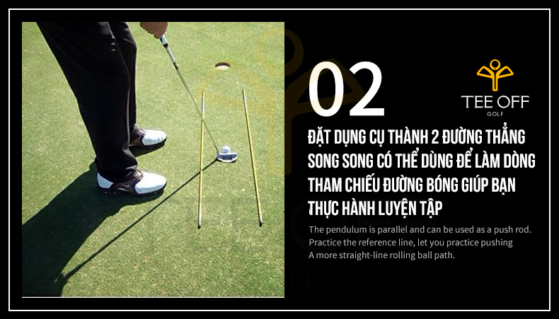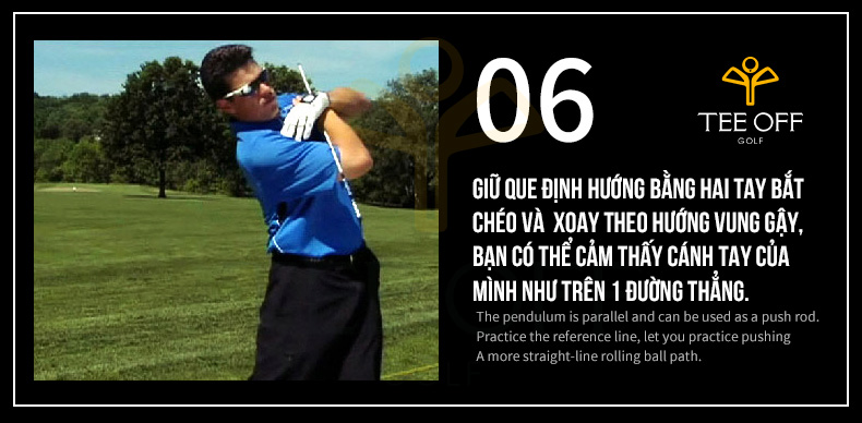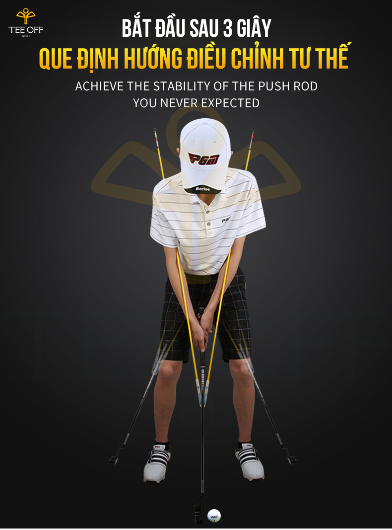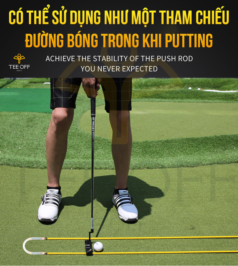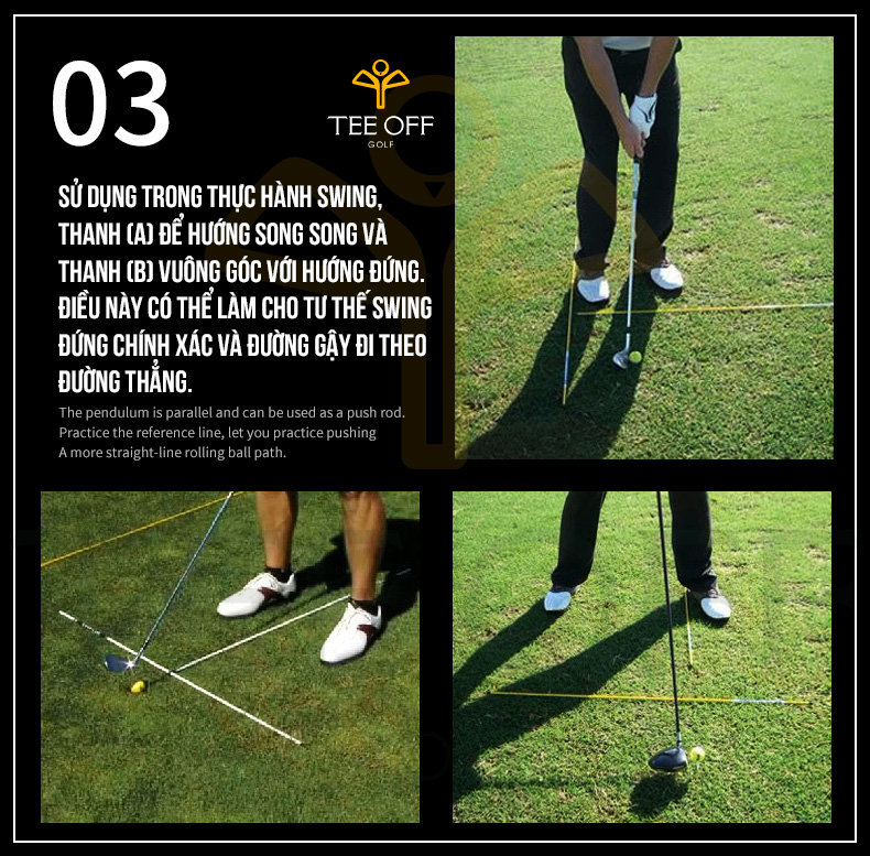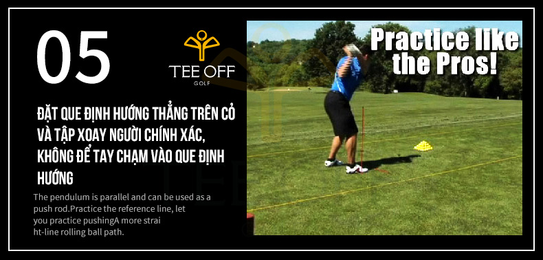 - Que định hướng giúp cố định tư thế xoay, hỗ trợ việc thực hành Putt, có hiệu quả sửa độc tác Swing, cấu tạo đơn giản, dễ dàng sử dụng.