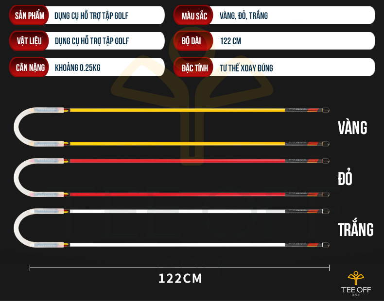 - Que định hướng tập Golf làm bằng sợi thủy tinh (tính linh hoạt mạnh mẽ), đầu que tập bọc lớp cao su đàn hồi siêu tốt.