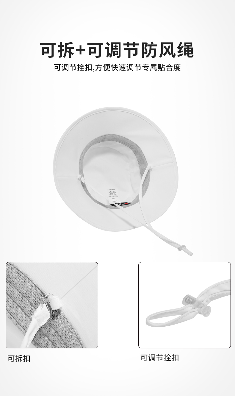 - Mũ có dây cổ đi kèm chống bay khi gặp gió (có thể tháo rời linh hoạt)