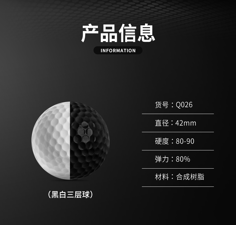 - Bóng Q026 là loại bóng nửa đen, trắng giúp golfer nhìn thấy đường line của bóng khi putting.