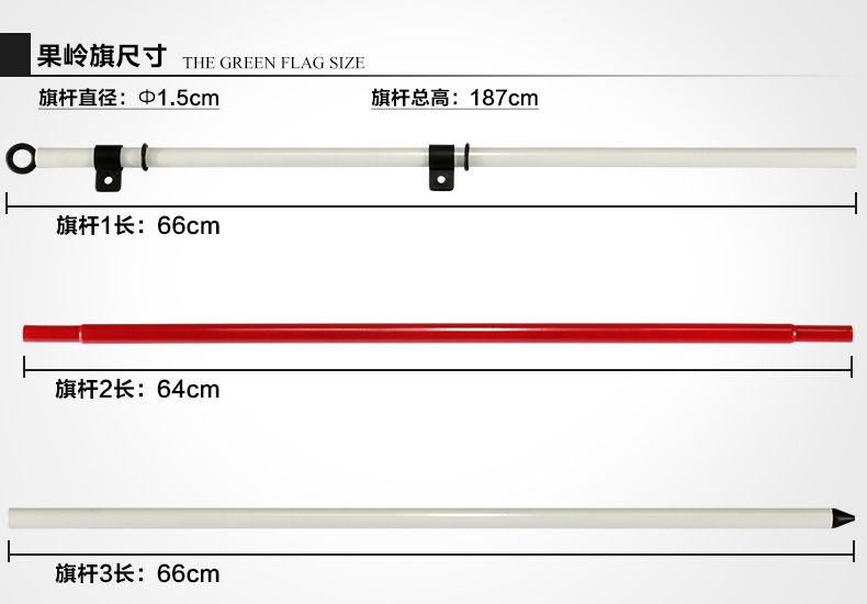 - 3 thanh cột cờ gắn nối tiếp, 1 cờ đỏ green flag