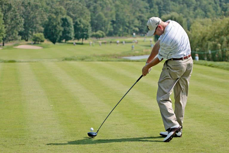 Khi bạn tiếp tục downswing, trục sẽ tiếp tục cong nhiều hơn và đầu gậy golf sẽ bắt đầu cố bắt kịp. Đúng lúc khuỷu tay trái của bạn duỗi thẳng (người thuận tay phải), trục thân gậy đã đạt tới độ cong tối đa và quá trình đảo ngược xảy ra ...