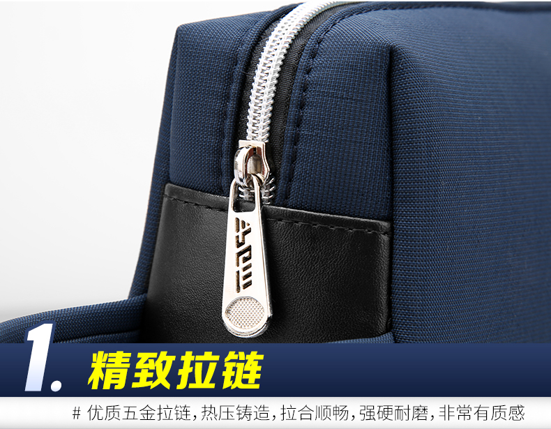 - Bên ngoài là lớp vải sợi Nylon + da Microfiber có may khóa kéo chính, dễ dàng làm sạch.