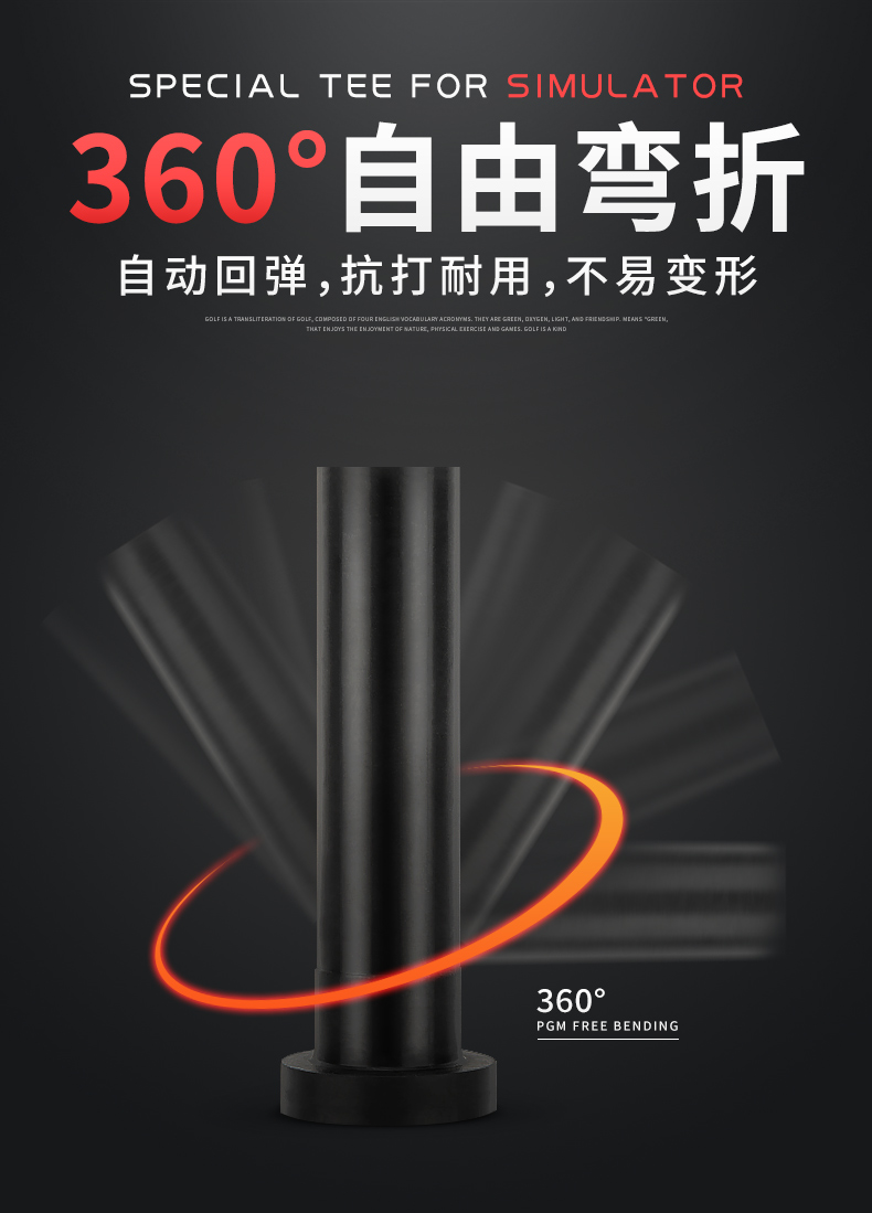 - Mô tả: Dòng tee đặc biệt dành cho phòng golf 3D, có thể uốn cong thoải mái 360, tự động phục hồi, chống đập và bền, không dễ biến dạng, tăng tính ổn định cho bóng.