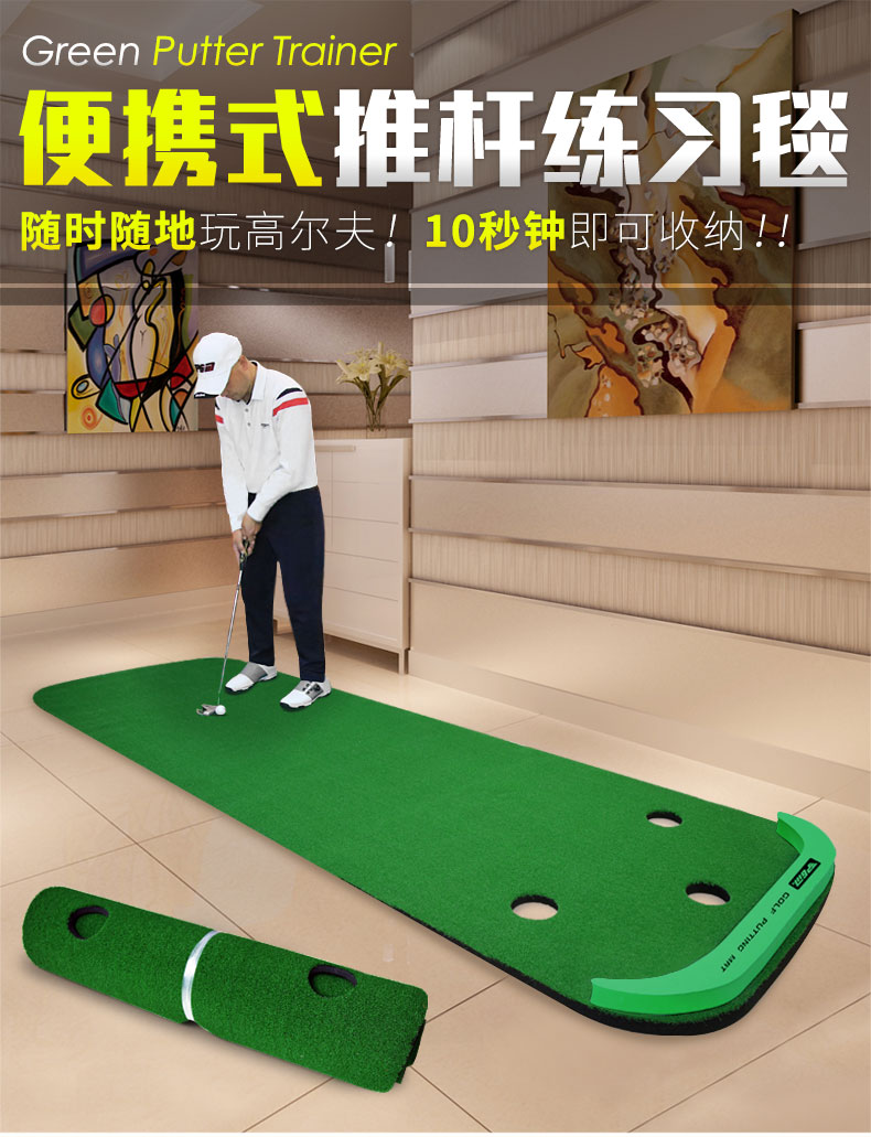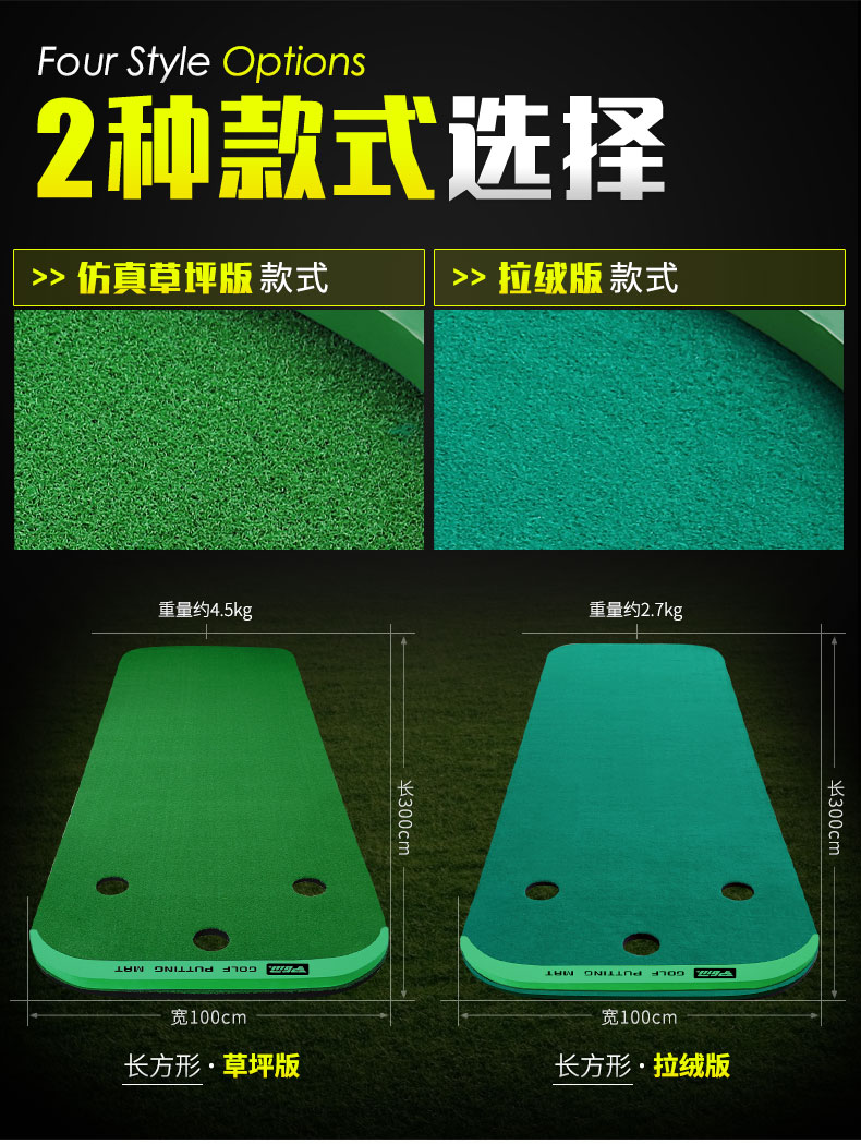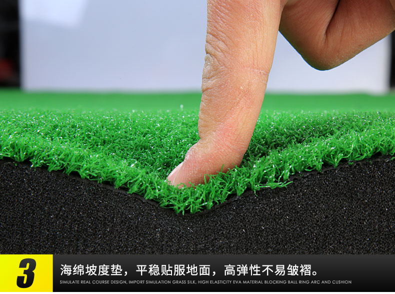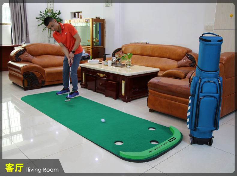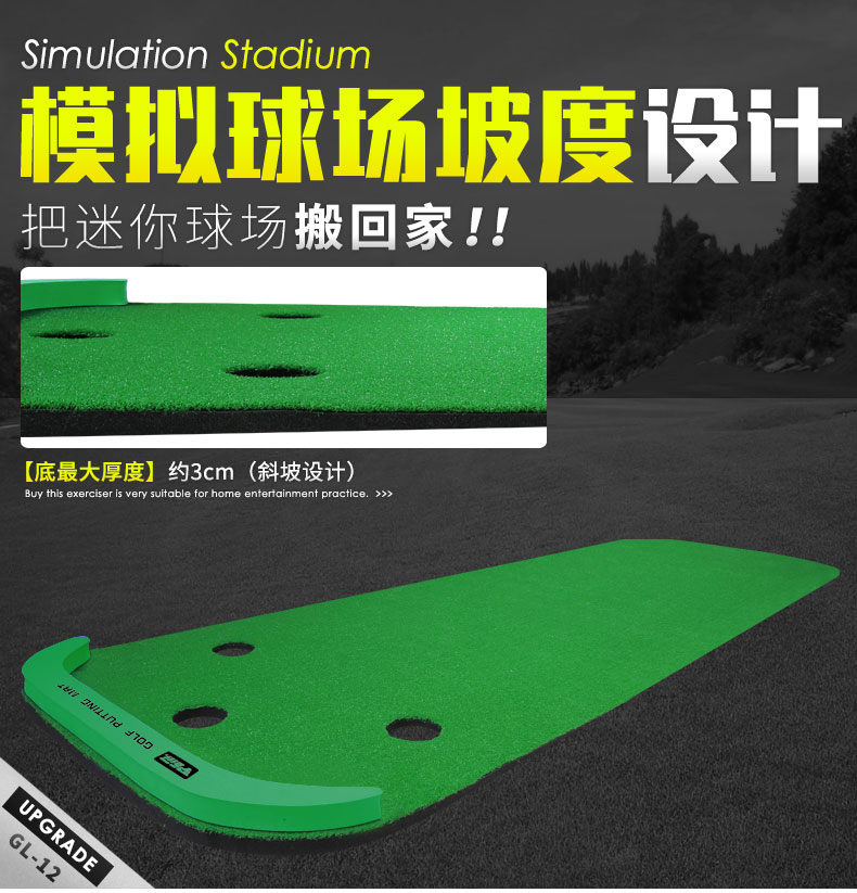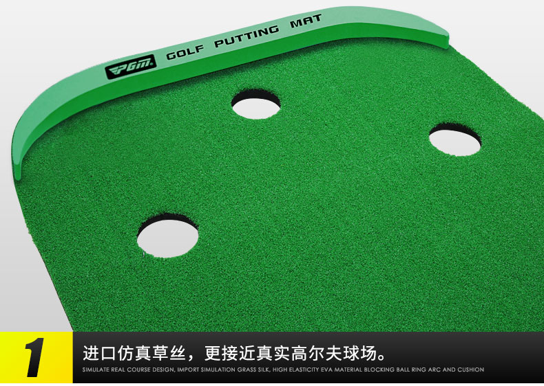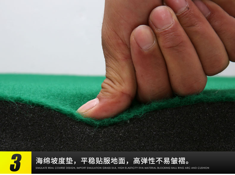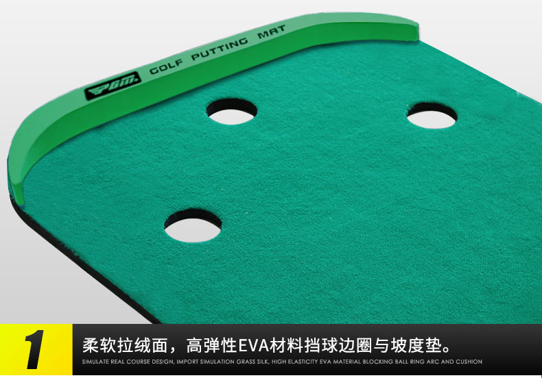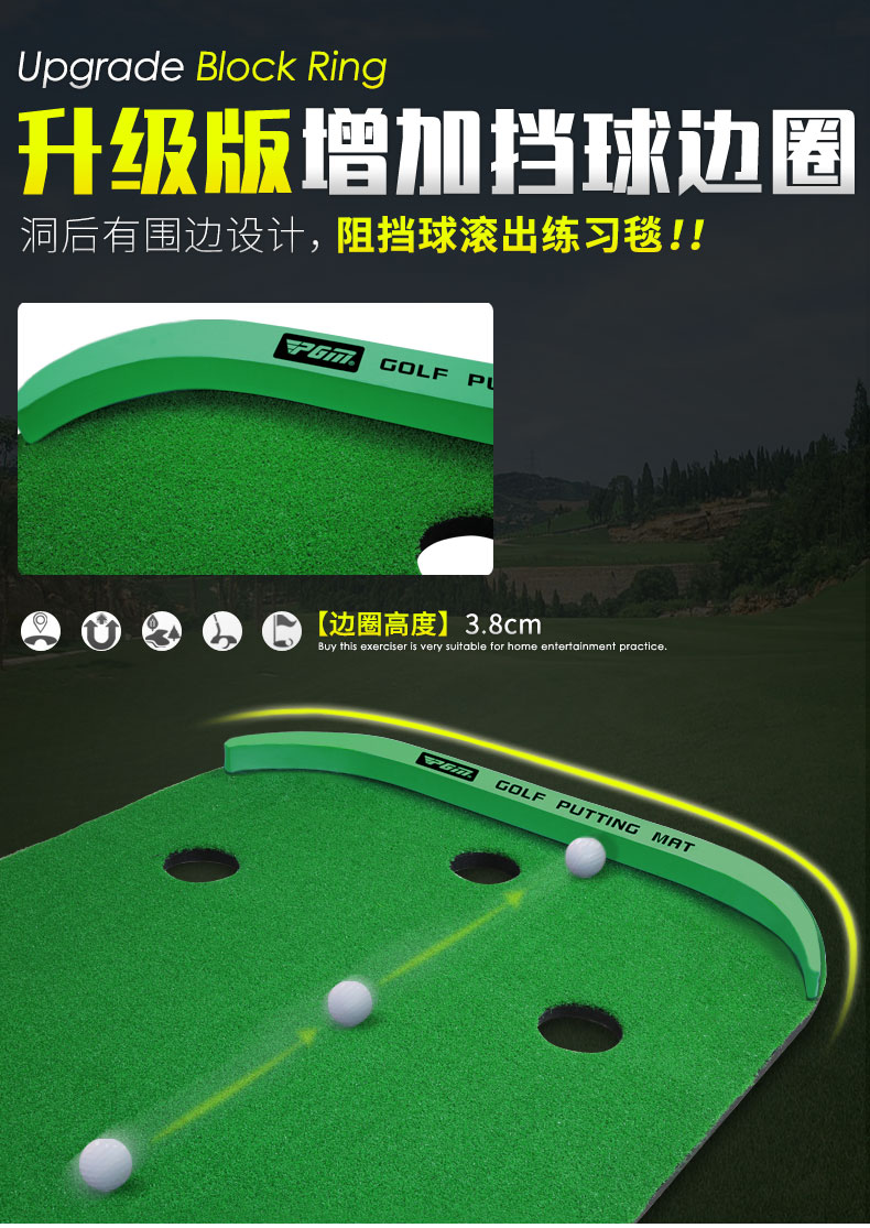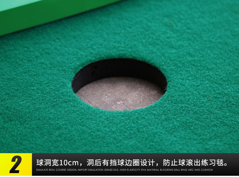 - Thảm có 3 hố golf khác nhau cùng cải tiến mới là thanh chặn bóng giúp golfer có thể luyện tập nhiều người cùng một lúc.