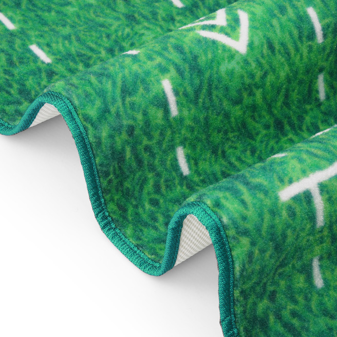 - Lớp thảm cỏ là chất liệu nhung cao cấp, đường may viền chắc chắn, thân thiện với môi trường thời gian sử dụng lâu dài, bền bỉ.