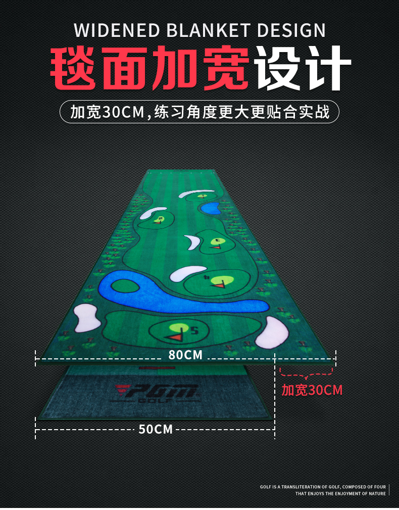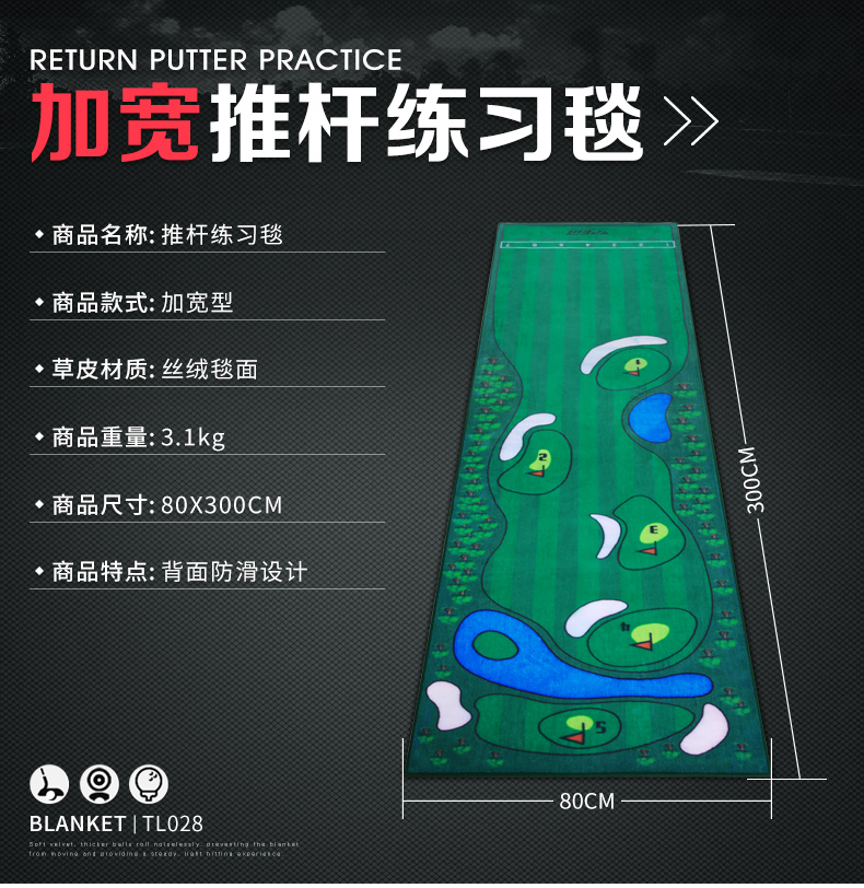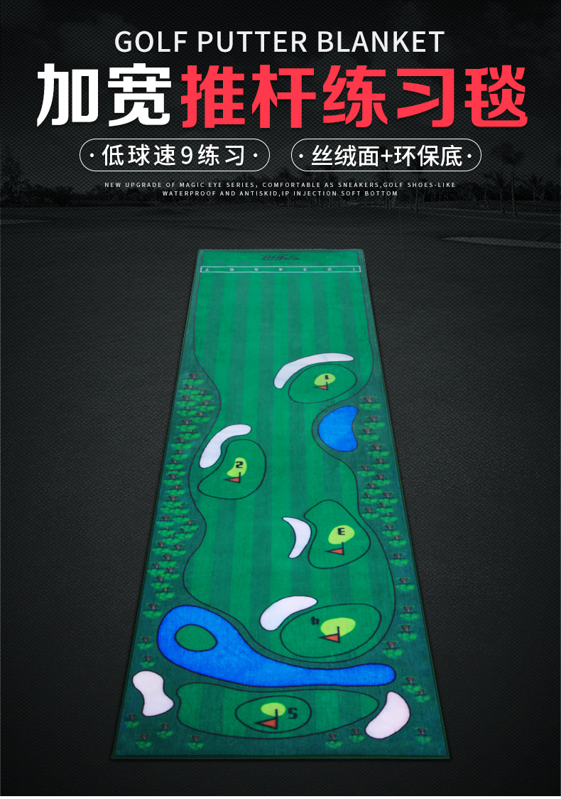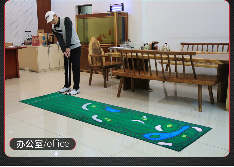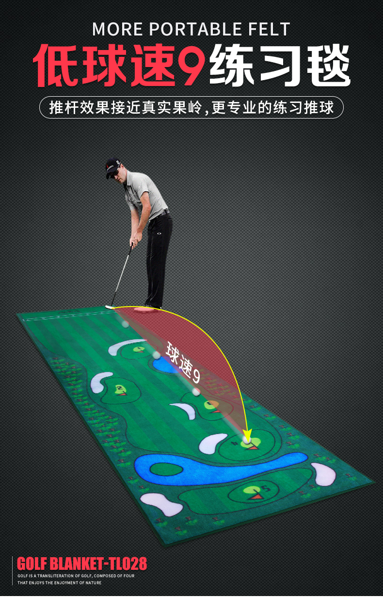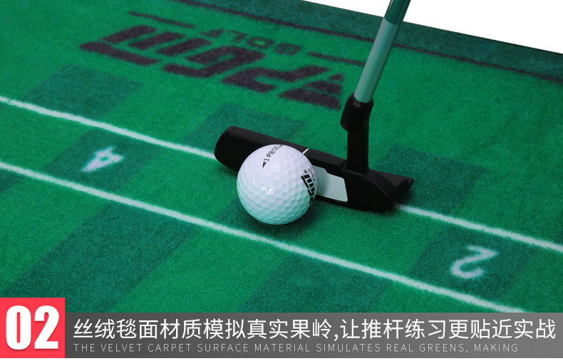 - Thiết kế đặc biệt: Thảm có độ dốc, khu vực bẫy cát, hồ nước để mô phỏng địa thế như ở trên sân Golf ở nhiều góc độ khác nhau.