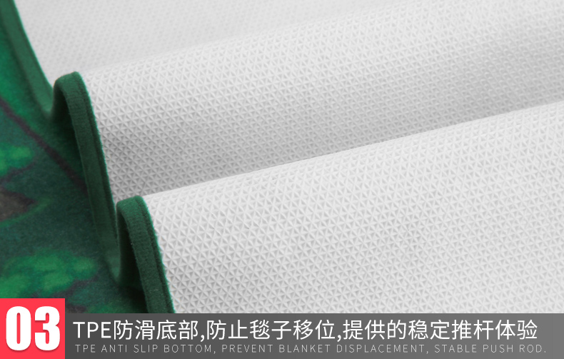 - Thảm được thiết kế phù hợp với các không gian nhỏ như: trong nhà, ban công, sân thượng, sân vườn hay có thể tận dụng bất cứ một không gian nào khác..., với nhiều dạng hình khối kích cỡ và số hố khác nhau để người chơi có thể lựa chọn. Mục đích là hỗ trợ người chơi tập kỹ năng gạt bóng và lấy lại cảm giác gạt bóng mà không cần phải ra sân thường xuyên.