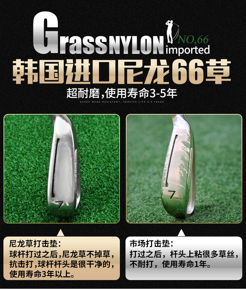 - Mặt đế cao su EVA có độ đàn hồi rất cao, bề mặt thảm cỏ mềm mịn giúp người chơi có vị trí đứng thoải mái khi thực hành cú Swing trên mặt thảm, dễ dàng hoàn thành việc tập luyện.