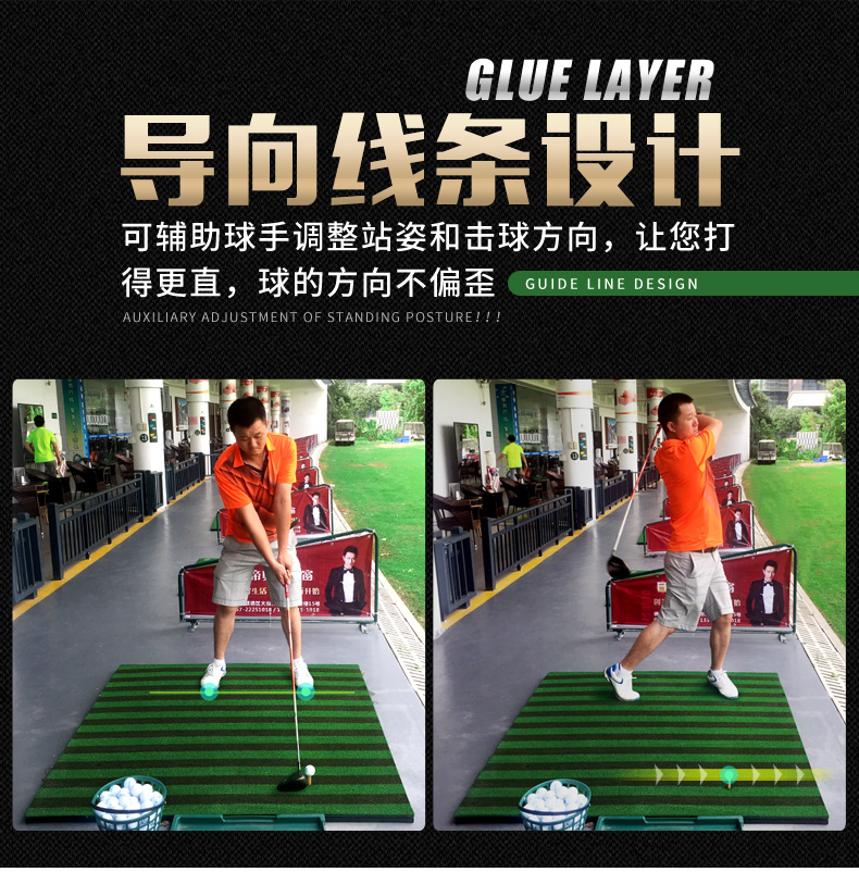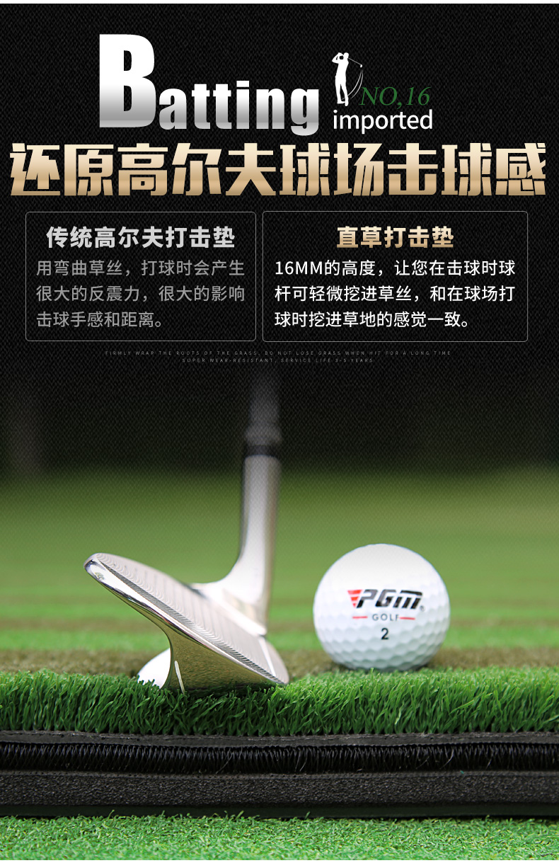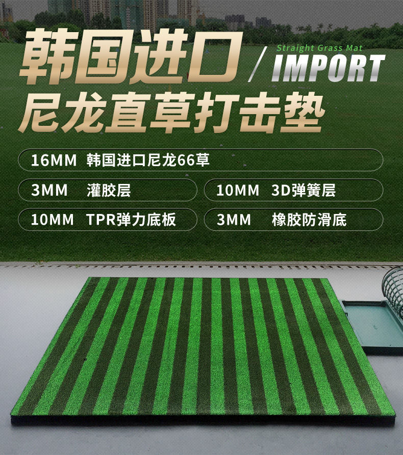 - Mặt đế cao su EVA có độ đàn hồi rất cao, bề mặt thảm cỏ mềm mịn giúp người chơi có vị trí đứng thoải mái khi thực hành cú Swing trên mặt thảm, dễ dàng hoàn thành việc tập luyện