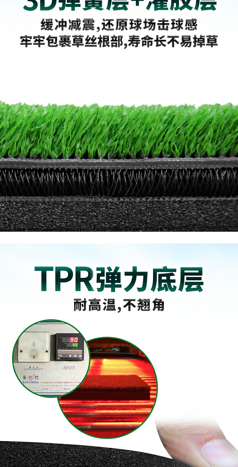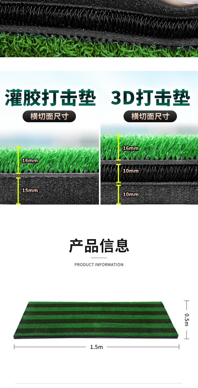 - Tấm lót trên bề mặt cỏ có chiều cao 16mm cho phép bạn khi đánh bóng, gậy có thể được đào nhẹ vào cỏ. Và đào sâu vào bãi cỏ trong khi chơi trên sân.