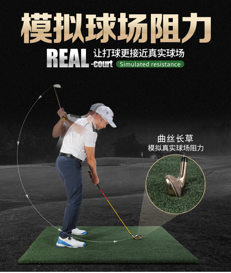 - Thảm sử dụng cỏ nhập khẩu tạo cảm giác chân thật nhất khi đánh, không lo cỏ bị gãy, rụng khi swing. Ngoài ra, thảm cũng được cải tiến nhờ công nghệ chống trượt mới nhất của PGM.
