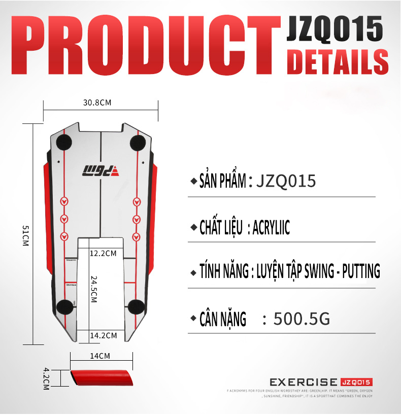 - Thiết bị hỗ trợ tập chơi Golf được làm bằng chất liệu Kính Acrylic.