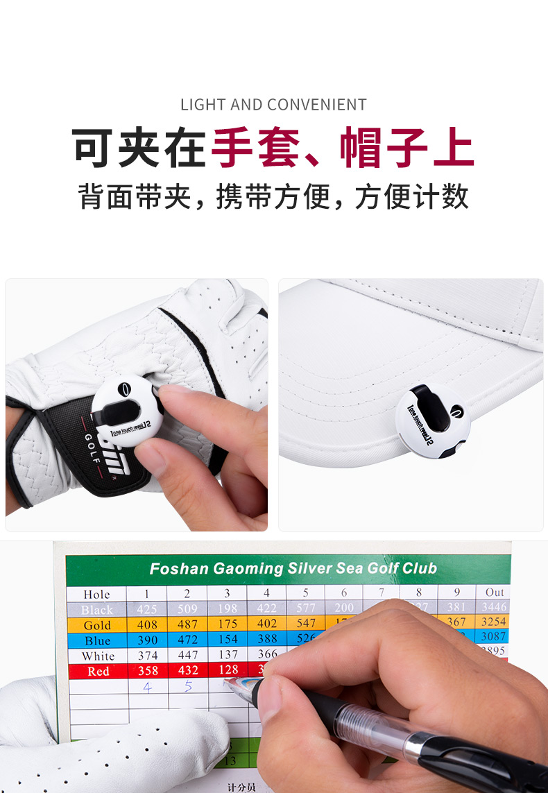 PGM JFQ006 là thiết bị tính điểm hình tròn nhỏ gọn, nhiều màu, có thể cài được trên găng tay hoặc vành mũ vô cùng tiện dụng. Để tính lại điểm từ đầu, quý khách chỉ cần bấm một lần vào nút giữa để khởi động lại.