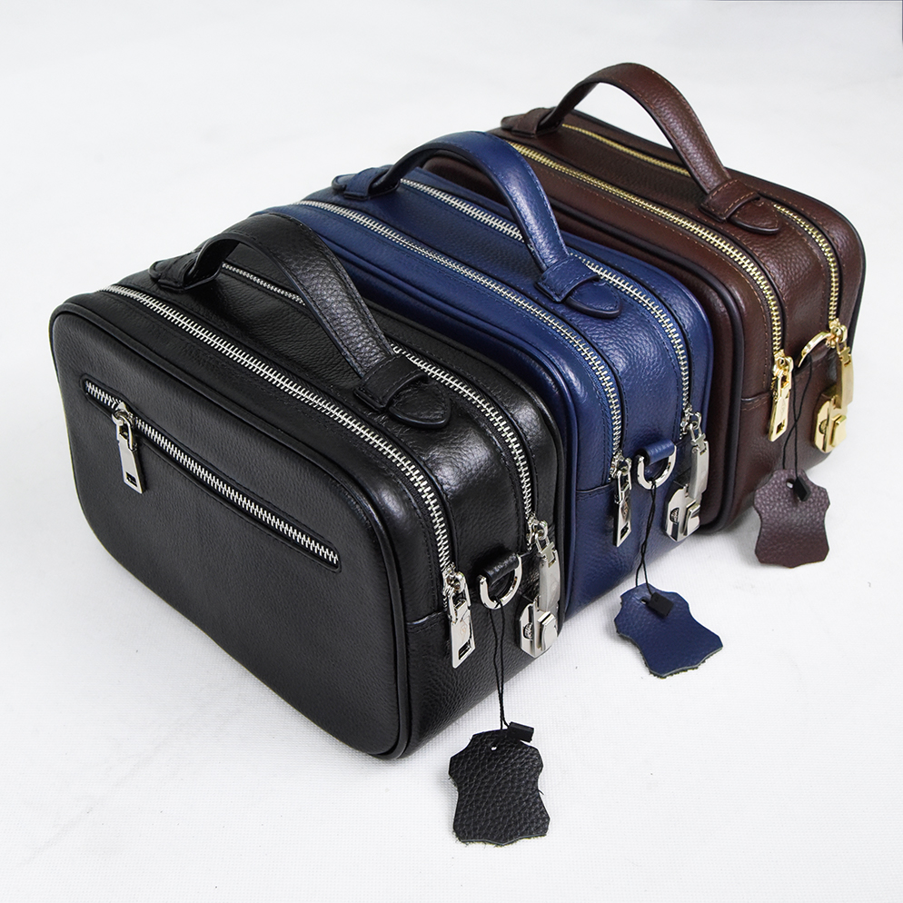 - Với chất liệu da bò cao cấp nhập khẩu, sản phẩm túi MSOB002 sẽ giúp quý golfer nâng tầm sự lịch lãm, sang trọng và tạo nên sự khác biệt đầy đẳng cấp! Da của túi được chọn lọc những pia da bò nhập khẩu chất lượng nhất để hoàn thiện nên chiếc túi này để đảm bảo không chỉ đẹp về hình thức mà còn bền và dễ lau chùi, làm sạch mà không ảnh hưởng đến chất lượng da. Thông thường những chiếc túi da ‘hàng chợ” chỉ cố gắng hoàn thiện phần hình thức, kiểu dáng thật tốt để thu hút người mua. Ngoài việc sử dụng các loại da giả, da PU chất lượng không cao, da vụn thì bộ khóa kéo cũng là một vấn đề. Sẽ thế nào khi sử dụng được một thời gian mà khóa kéo bị dít, bị gỉ gây nên trải nghiệm khó chịu cho người sử dụng. Đây cũng là điểm nhấn trên sản phẩm túi xách da du lịch của Martini vì sự đầu tư vào một bộ khóa tốt làm từ chất liệu đồ mạ hợp kim sáng bóng.