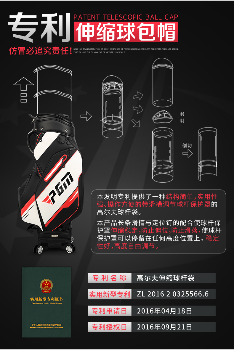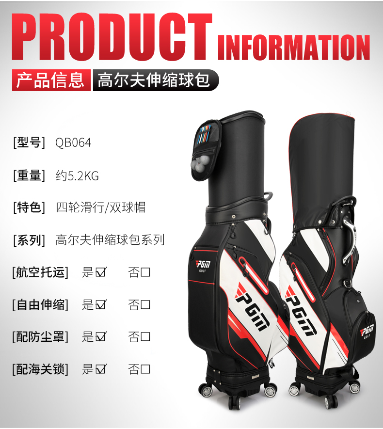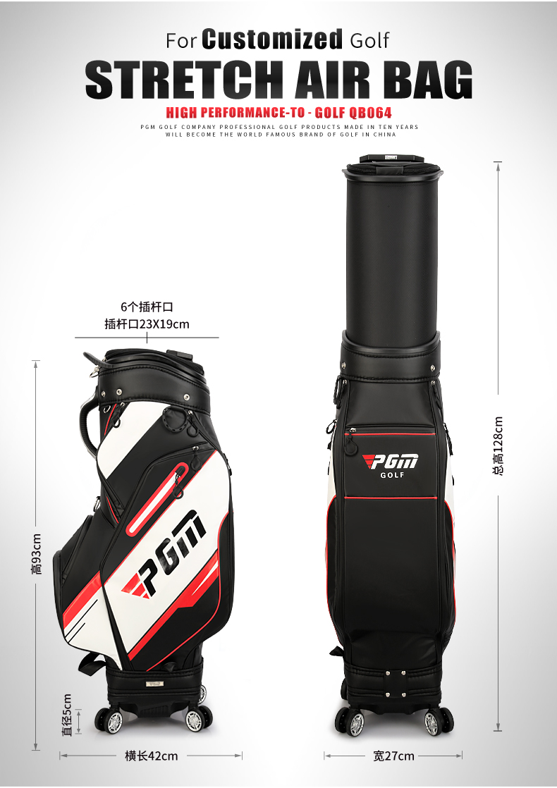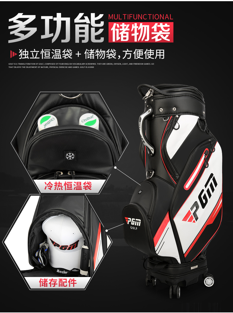 - Tên sản phẩm: Túi Gậy Golf Fullset Nắp Cứng 4 Bánh Xe - PGM 4 Universal Wheel Retractable Golf Bag - QB064