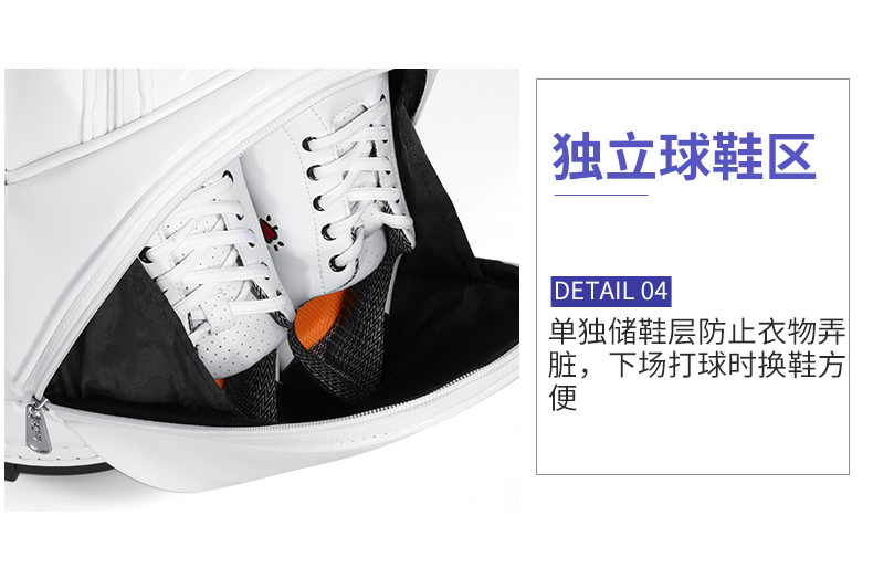 - Dễ dàng lắp vừa bộ gậy, thiết kế túi đa chức năng, mặt sau có thiết kế túi giày lớn, dễ dàng mang giày, găng tay, tee, ô và các vật dụng khác.