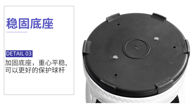 - Phần đế cao su giúp túi gậy đứng thẳng vững chắc giúp người chơi thoải mái thao tác lấy gậy ra, cắm vào rất tiện lợi.