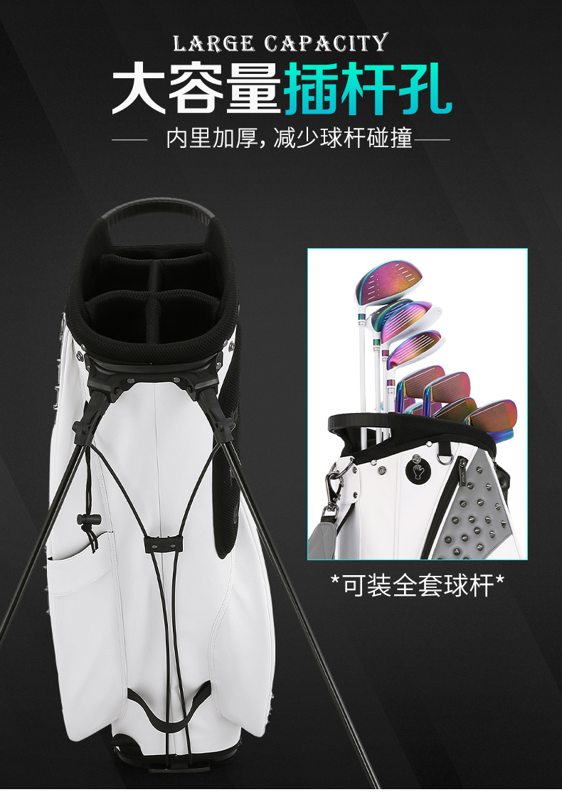 - Túi gậy Golf có chân chống QB091 là mẫu túi Golf thiết thế dành riêng cho Golfer nữ với thiết kế đinh tán và đầu túi gậy trong suốt cá tính, trendy. Túi có 2 nắp tiện dụng.