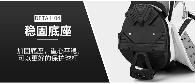 - Phần đế cao su giúp túi gậy đứng thẳng vững chắc giúp người chơi thoải mái thao tác lấy gậy ra, cắm vào rất tiện lợi.