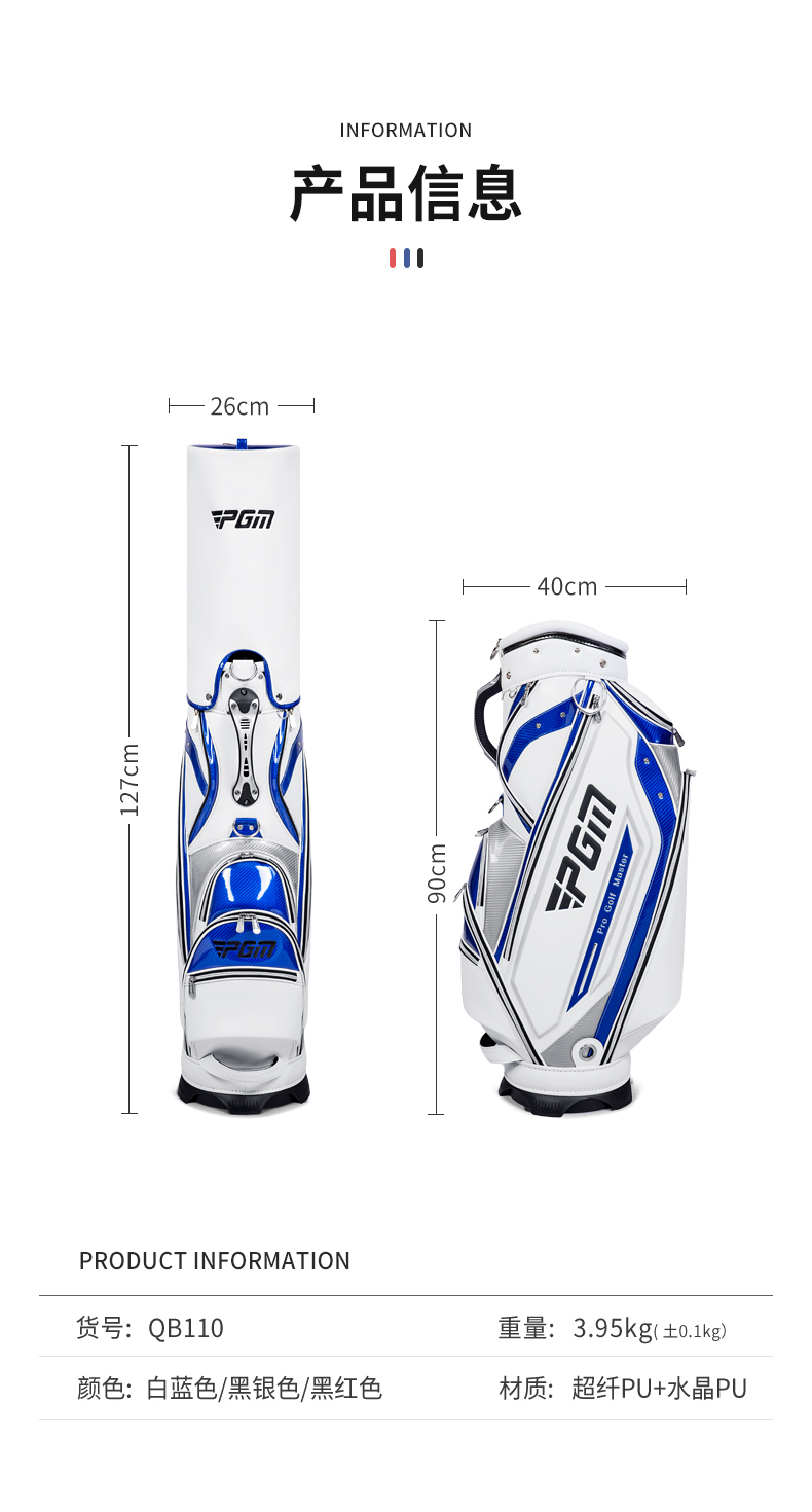 - Tên sản phẩm: Túi Gậy Golf Vải Sợi Chống Nước - PGM Water Proof Microfiber Golf Bag - QB110