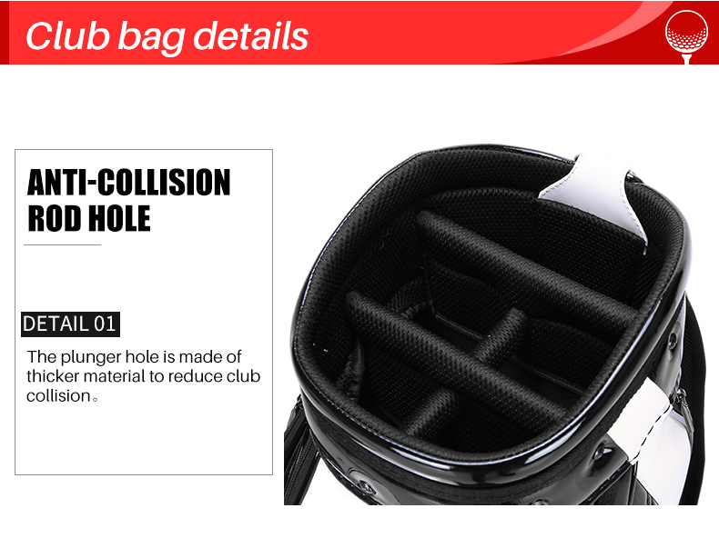 - Túi đựng gậy Golf với một ống bảo vệ bộ gậy điều chỉnh rãnh trượt, ngăn khỏi trượt và bảo vệ bộ gậy có thể ở bất kỳ vị trí độ cao nào, với độ ổn định tốt.