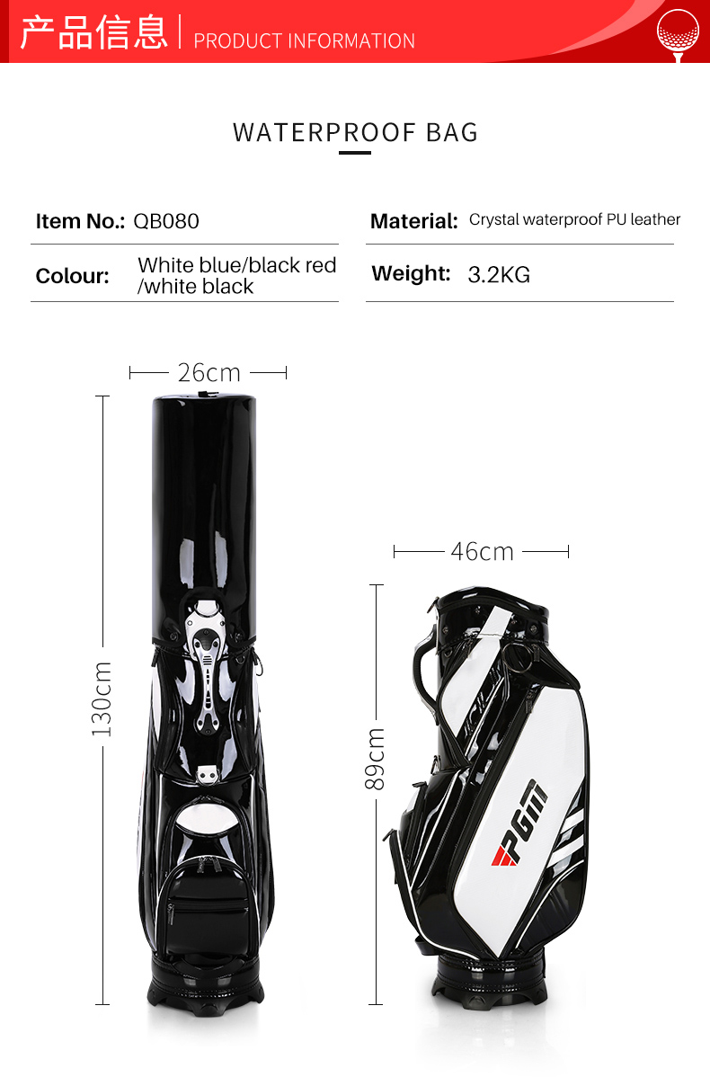 - Tên sản phẩm: Túi Gậy Golf Fullset Chống Nước - PGM Waterproof Staff Golf Bag - QB080