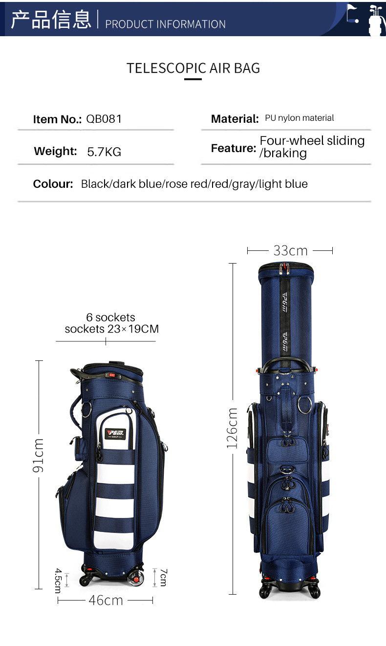 - Tên sản phẩm: Túi Gậy Golf Fullset Nắp Cứng 4 Bánh Đa Năng - PGM Retractable Golf Bag - QB081