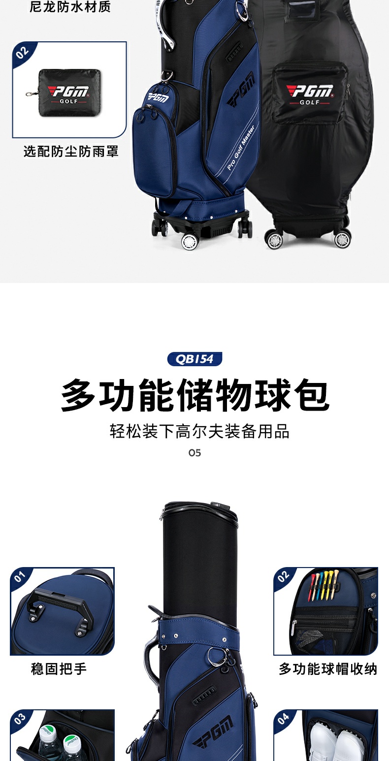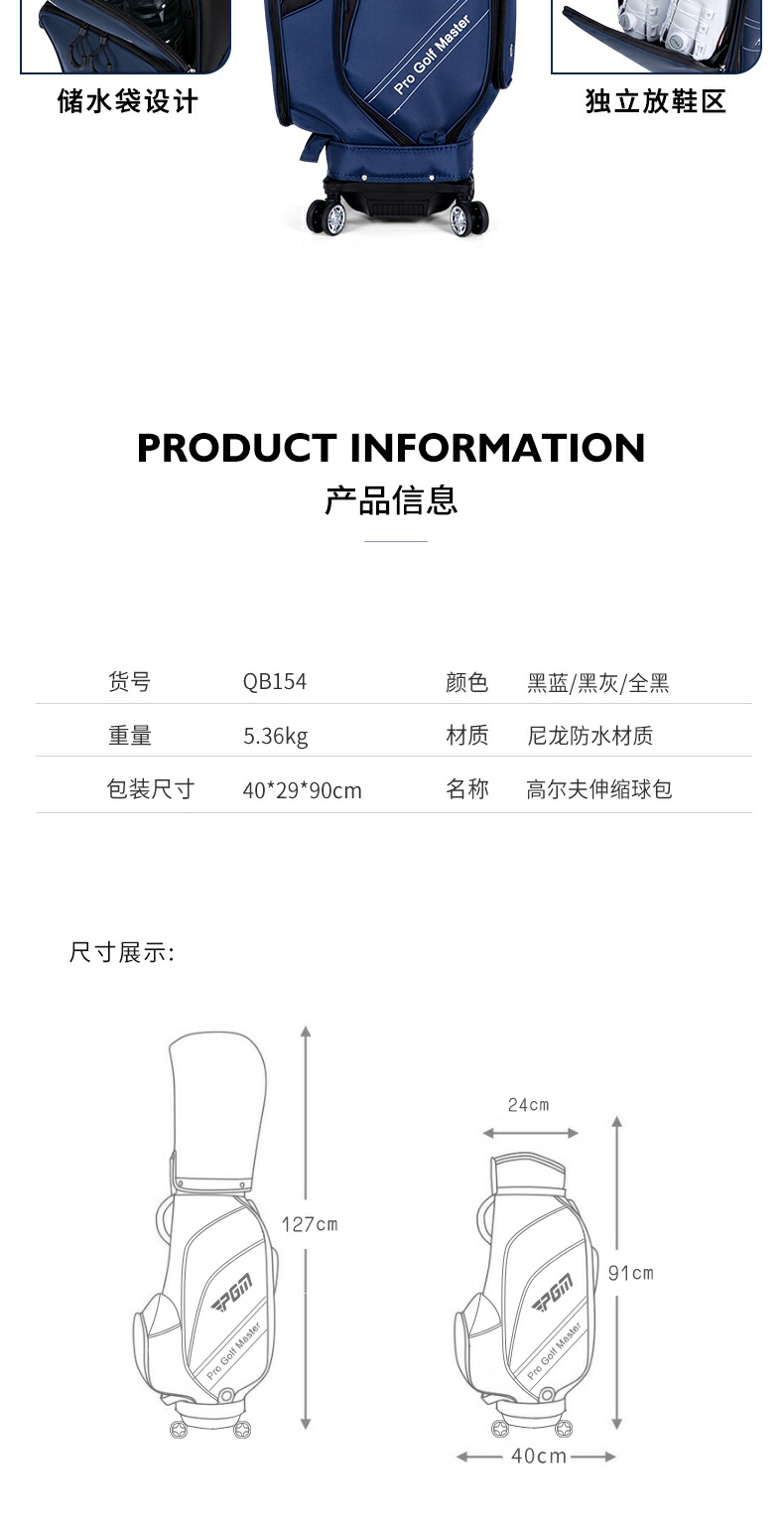 Túi Gậy Golf Fullset Nắp Cứng 4 Bánh Đa Năng - PGM Retractable Golf Bag - QB081