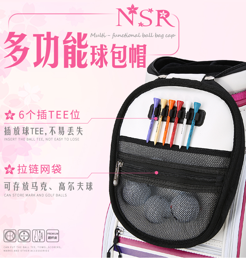 - Túi gậy có rất nhiều ngăn nhỏ có thể đựng các phụ kiện Golf khi lên sân như: bóng, tee, giày,...