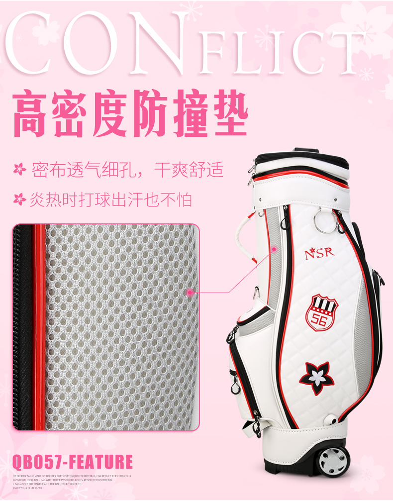 - Tên sản phẩm: Túi Gậy Golf Nữ Fullset Nắp Cứng - PGM Microfiber Retractable Flower Printing Golf Bag - QB057