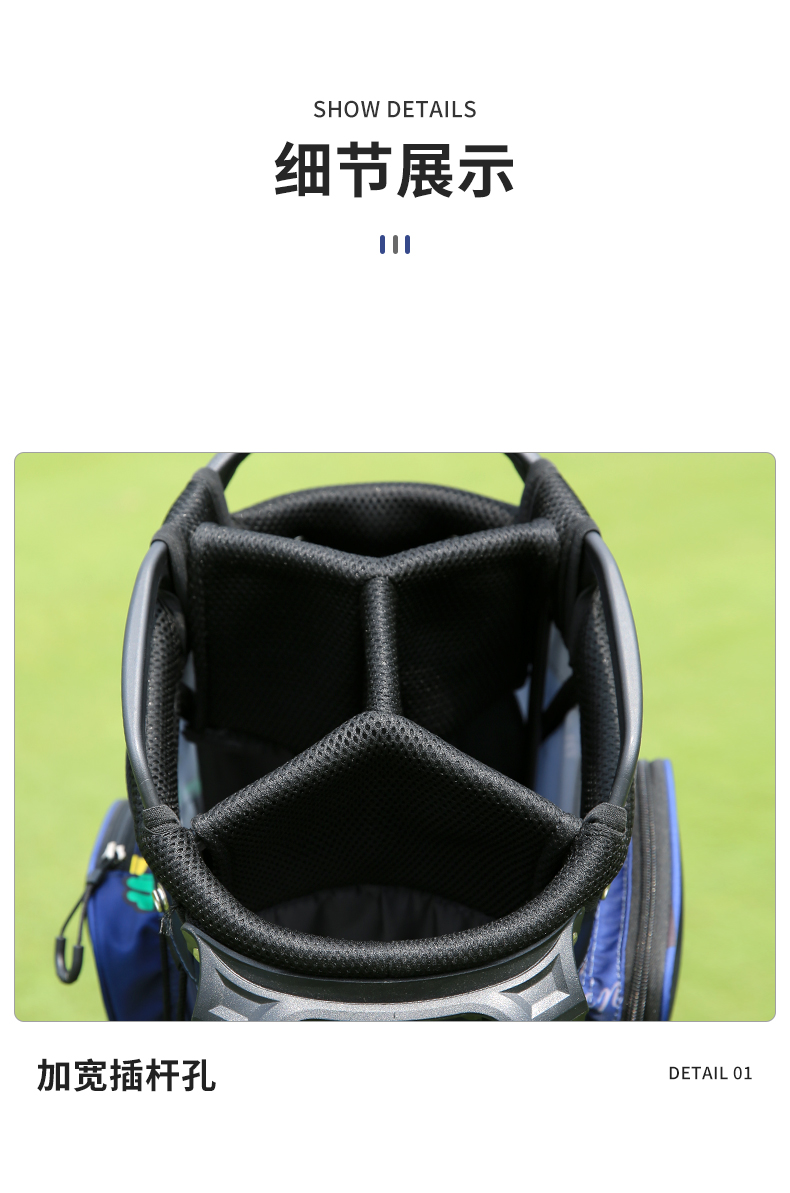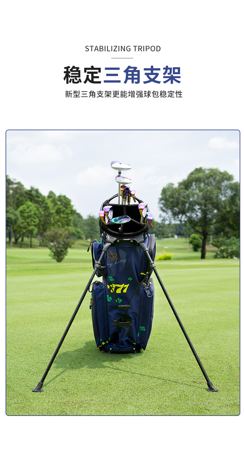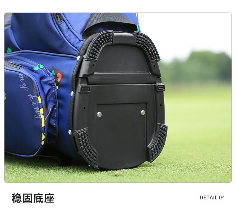 - Phần đế làm từ nhựa cứng giúp túi gậy đứng thẳng vững chắc giúp người chơi thoải mái thao tác lấy gậy ra, cắm vào rất tiện lợi.