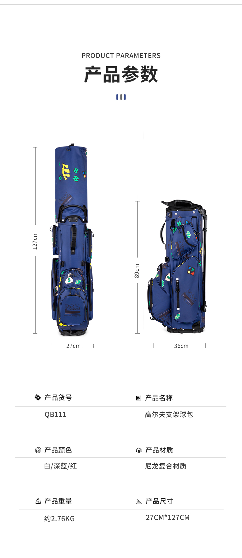 - Tên sản phẩm: Túi Gậy Golf Nylon Chống Nước - PGM Nylon Waterproof Golf Bag - QB111