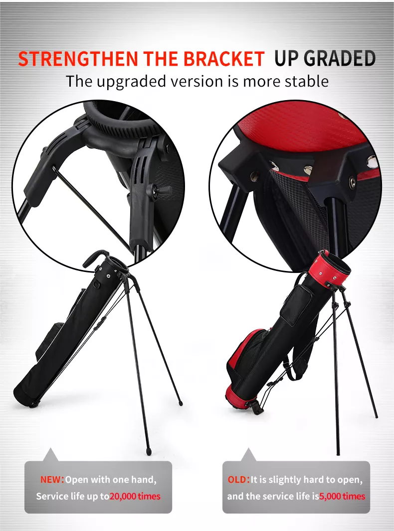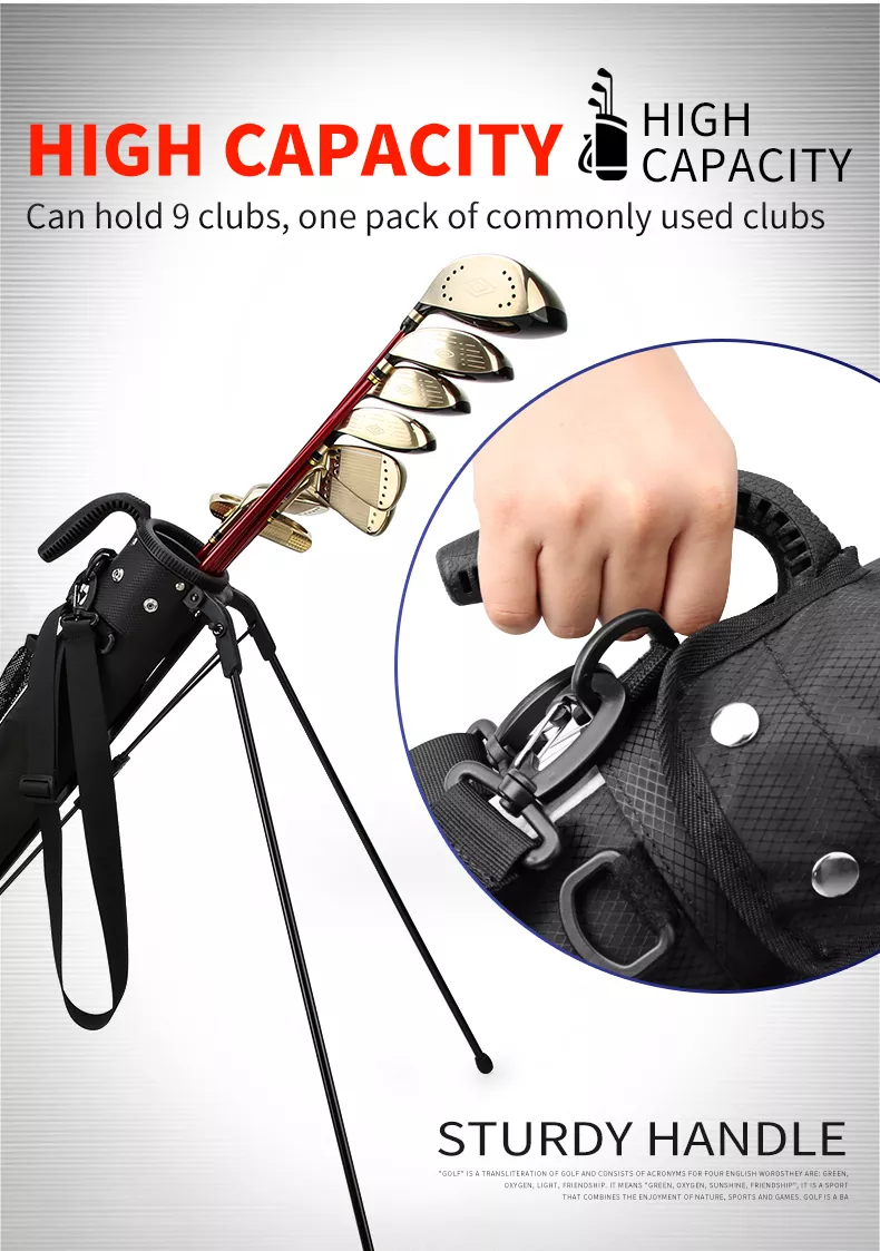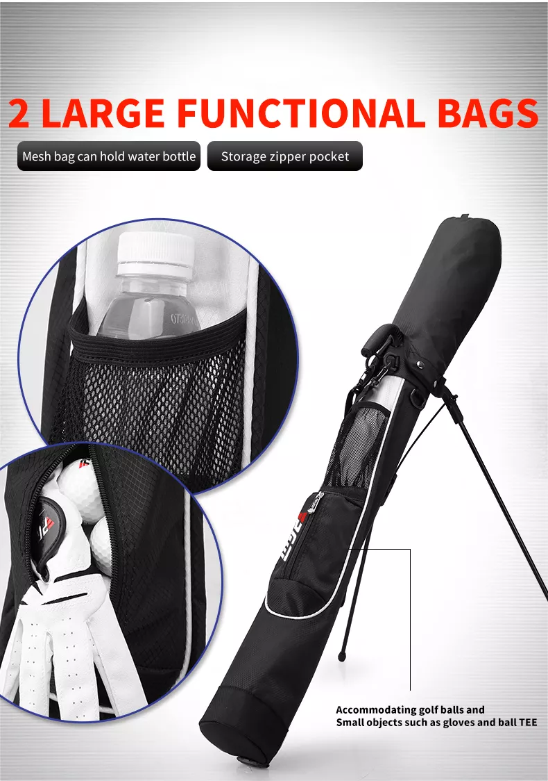 - Túi gậy đứng có chân chống QIAB015 được làm bằng chất liệu cao cấp, thiết kế đơn giản, năng động với quai đeo rất tiện dụng nên thuận lợi mang theo mình khi chơi golf.