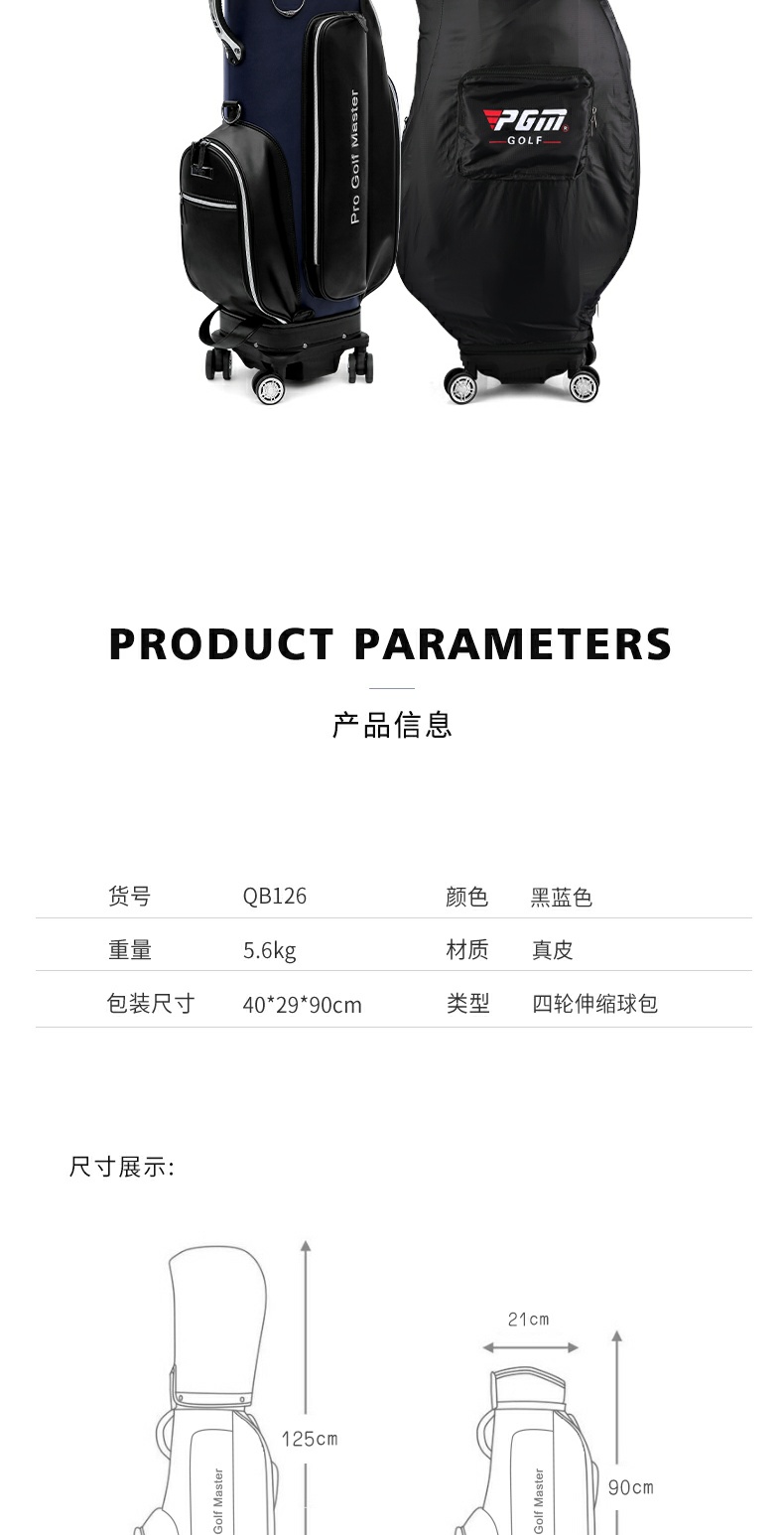 Túi Gậy Golf Nắp Cứng 4 Bánh Đa Năng - PGM 4 Universal Wheel Retractable Golf Bag - QB061