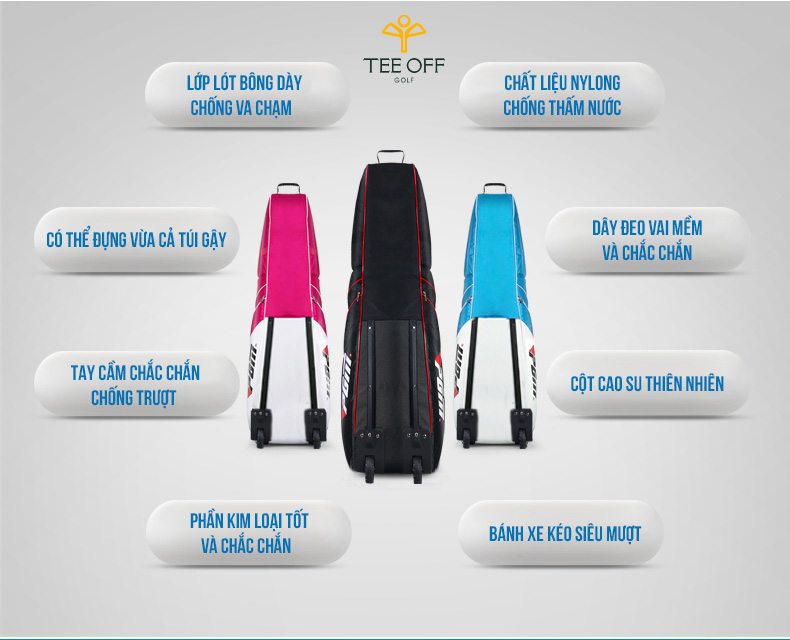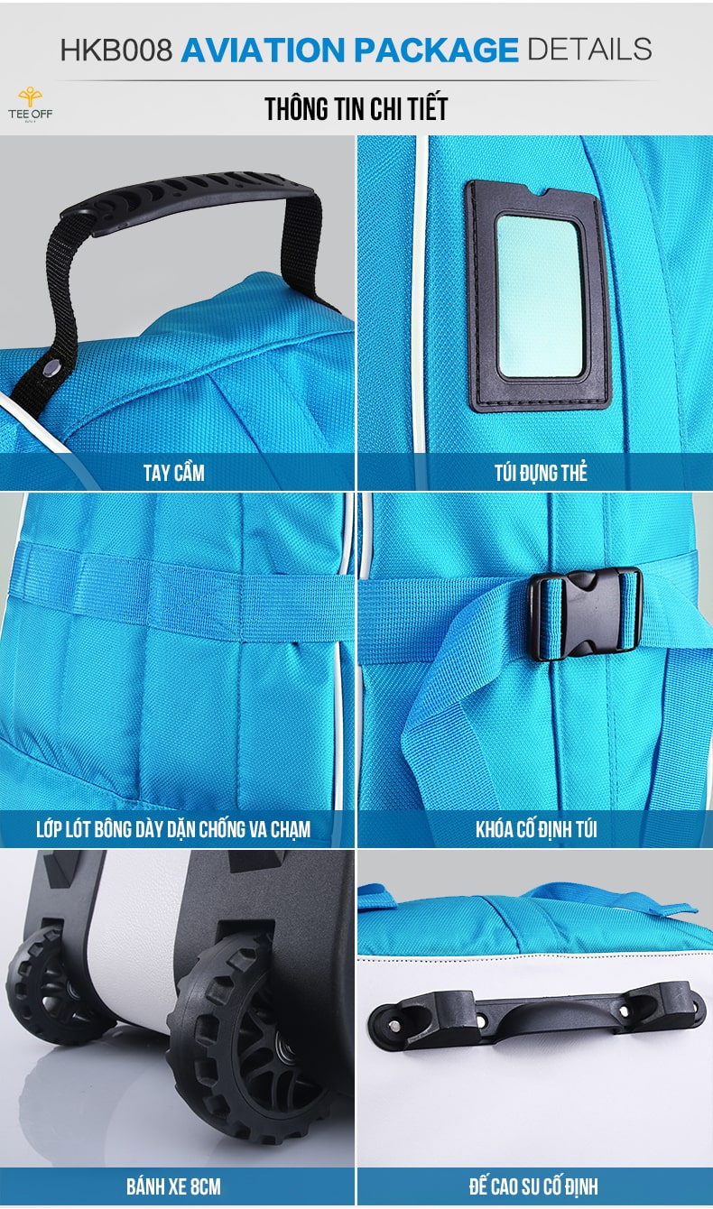 - Túi HKB008 được thiết kế tinh tế, gọn gàng kèm tính năng chống nước, cực bền, bảo vệ gậy tốt, thật thuận tiện khi di chuyển bằng tay kéo.