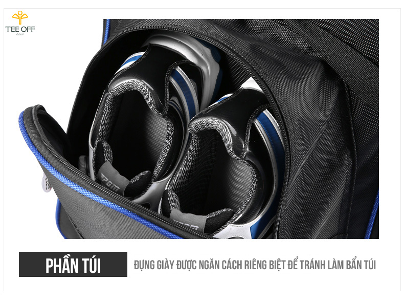Đặc tính nổi bật: Túi Nylon dày 3 lớp, chịu lực - chống va đập, có đai an toàn cố định giúp bảo vệ bộ gậy trong quá trình sắp xếp, vận chuyển.