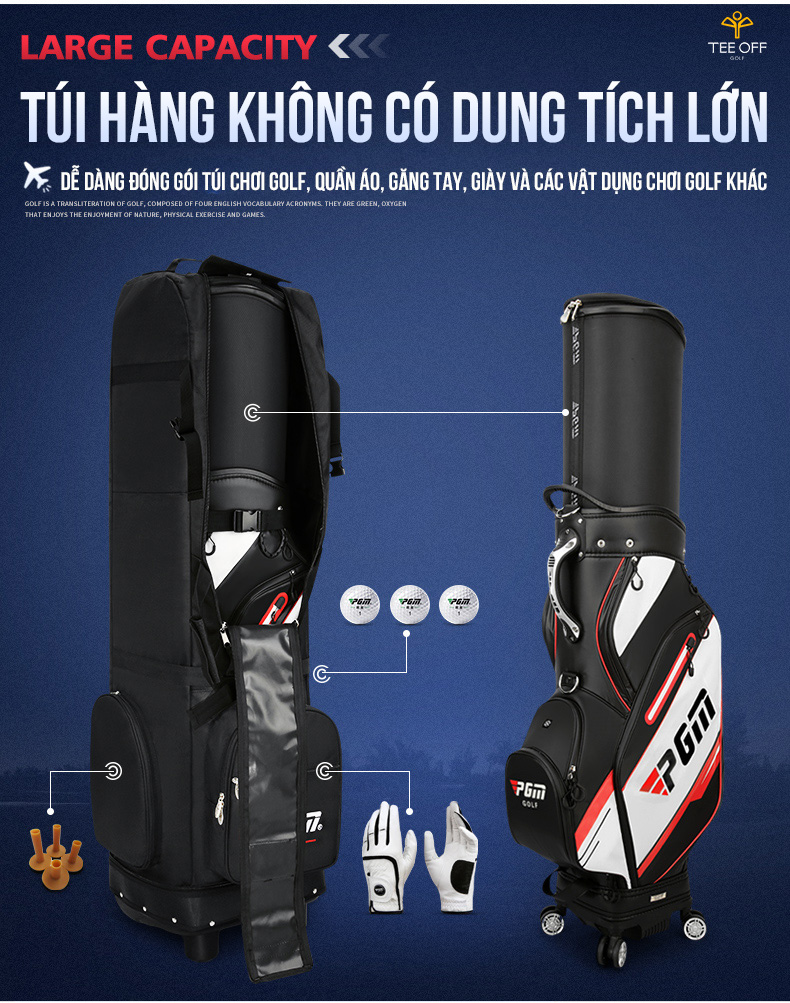 - Tên sản phẩm: Túi Golf Hàng Không Gấp Gọn Có Bánh Xe - PGM Thickened Folding Golf Travelling Bag - HKB012