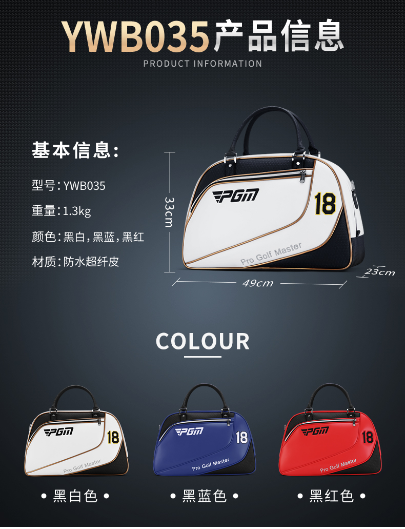 - Túi đựng đồ Golf YWB035 là mẫu túi xách tay golf nam siêu nhẹ có dung tích lớn, giúp golfer chứa trọn toàn bộ trang thiết bị khi đi tập golf.